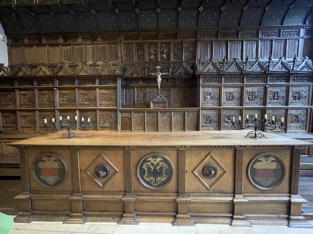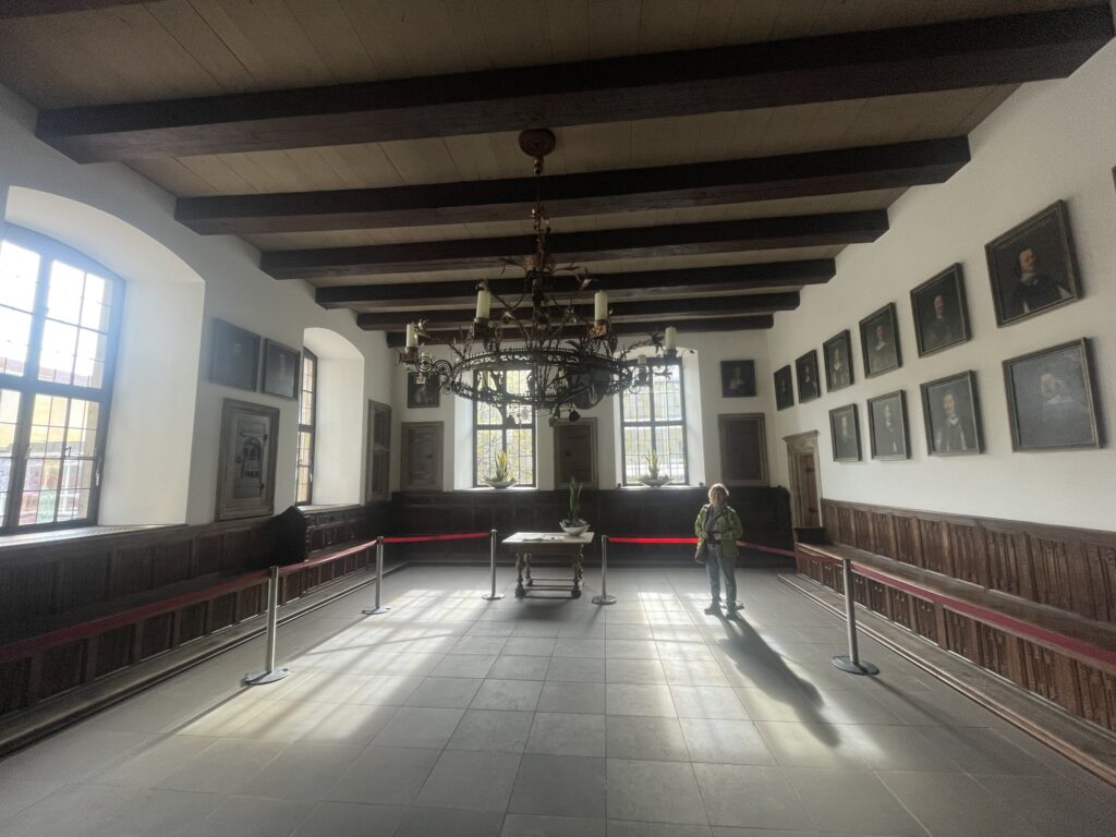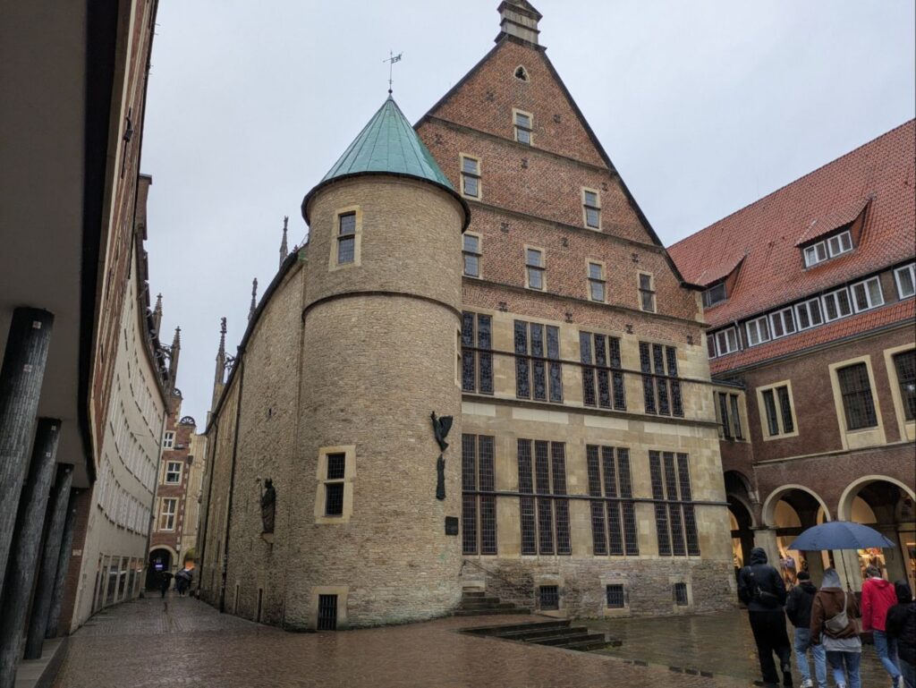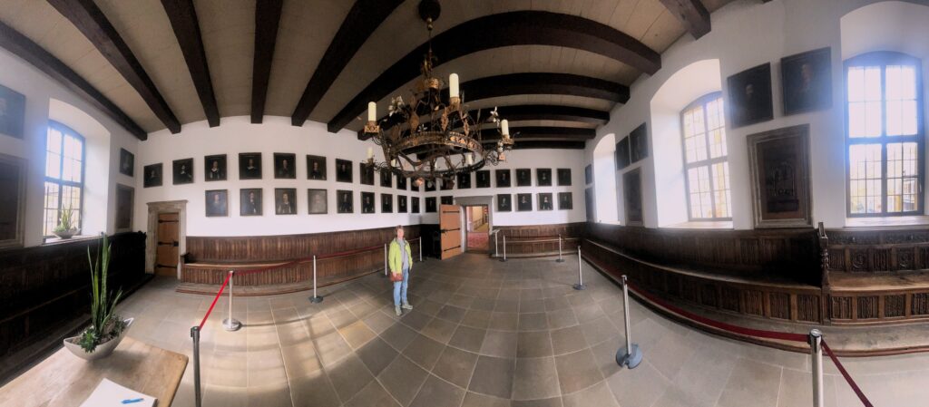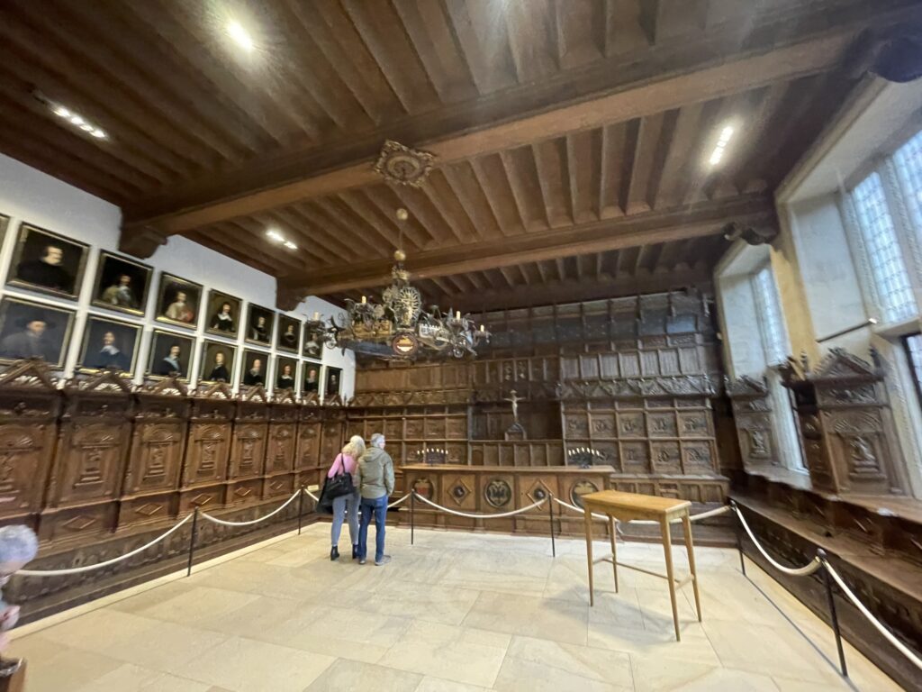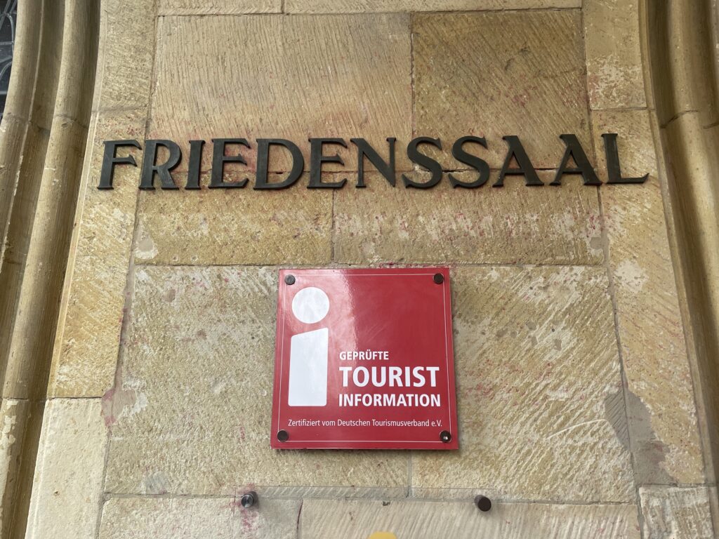 Toen terugkwamen was alles al opgeruimd. Dit terwijl het inmiddels mooi weer was geworden en het pas 3 uur was. Het bezoek aan de Friedenssaal in het Rathaus was interessant en de uitleg in de zaal werd helaas gedaan door een van te voren opgenomen bandje. Gelukkig was er ook een Nederlandstalig boekje