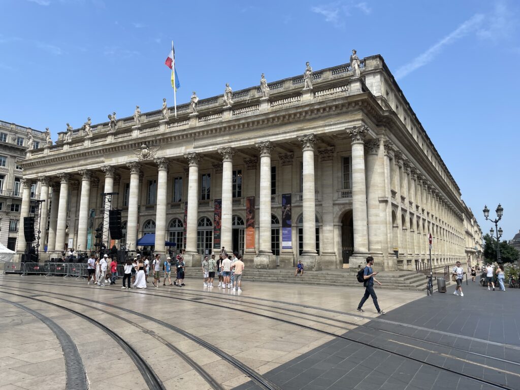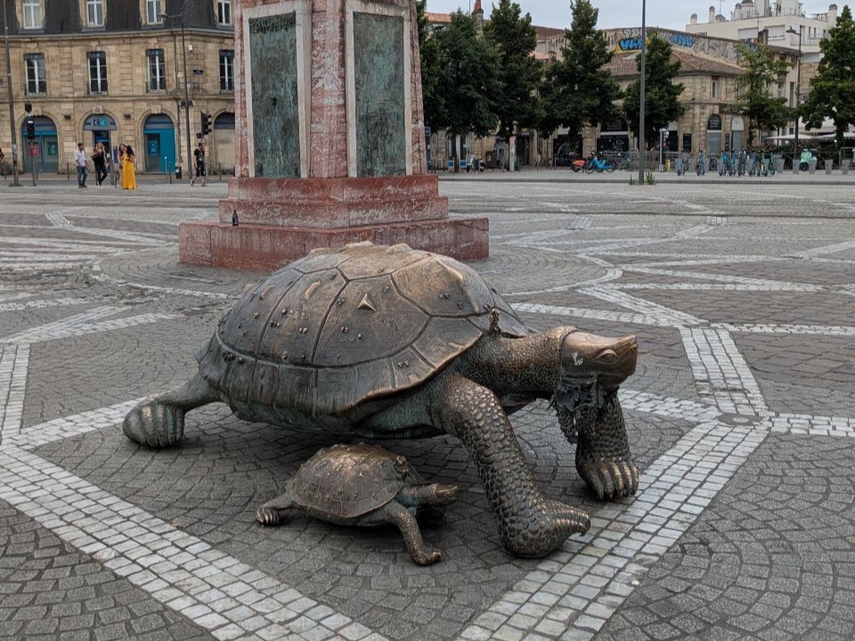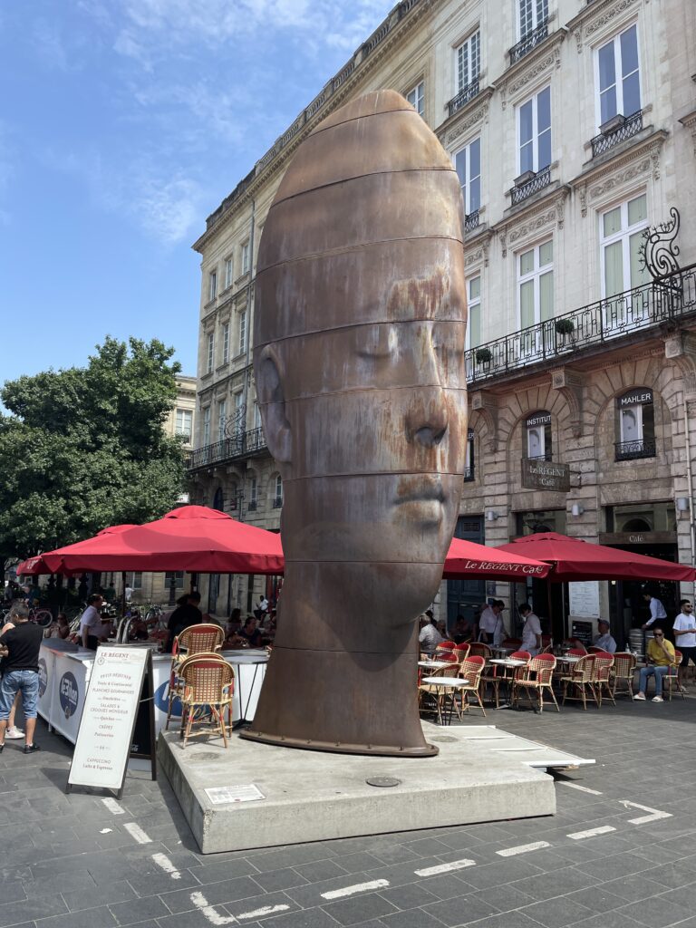 Dus nog tijd over voor een kunstmuseum. Het CAPC museum schijnt bijzonder te zijn, dus daar naartoe. Mooi gebouw hoor, maar weinig kunst en wat daar staat kan ons niet echt boeien. Wel een grappige glijbaan en een paar vogels die in een nis zitten, maar dat was het dan. en weer door naar onze kamer om de aangekochte wijn weg te brengen. Nu lekker op een terras aan de rivier. Morgen weer verder