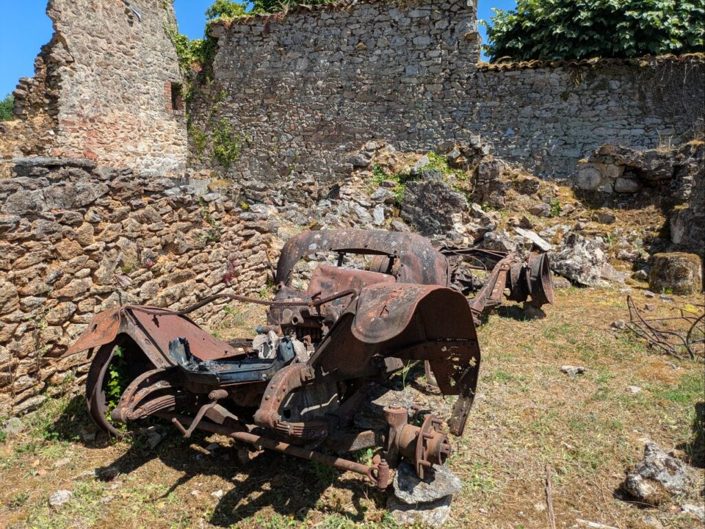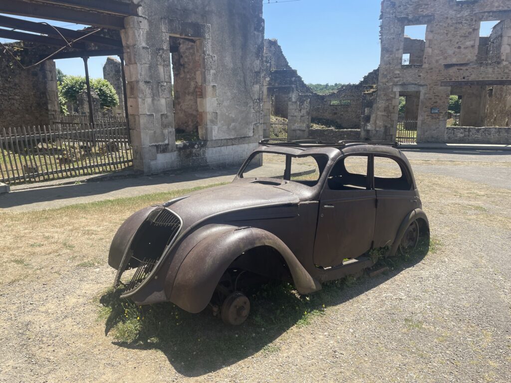 Daarna zijn we naar een wat zwaardere bestemming gereden. Het martelaars dorp Oradour-Sur-Glane waar op 10 juni 1944 alle inwoners zijn vermoord door het regiment der Fuhrer van de SS. Als vergelding voor de moord op twee Duitse soldaten door het verzet. Slechts 1 vrouw en 5 mannen hebben kunnen vluchten. Erg indrukwekkend.