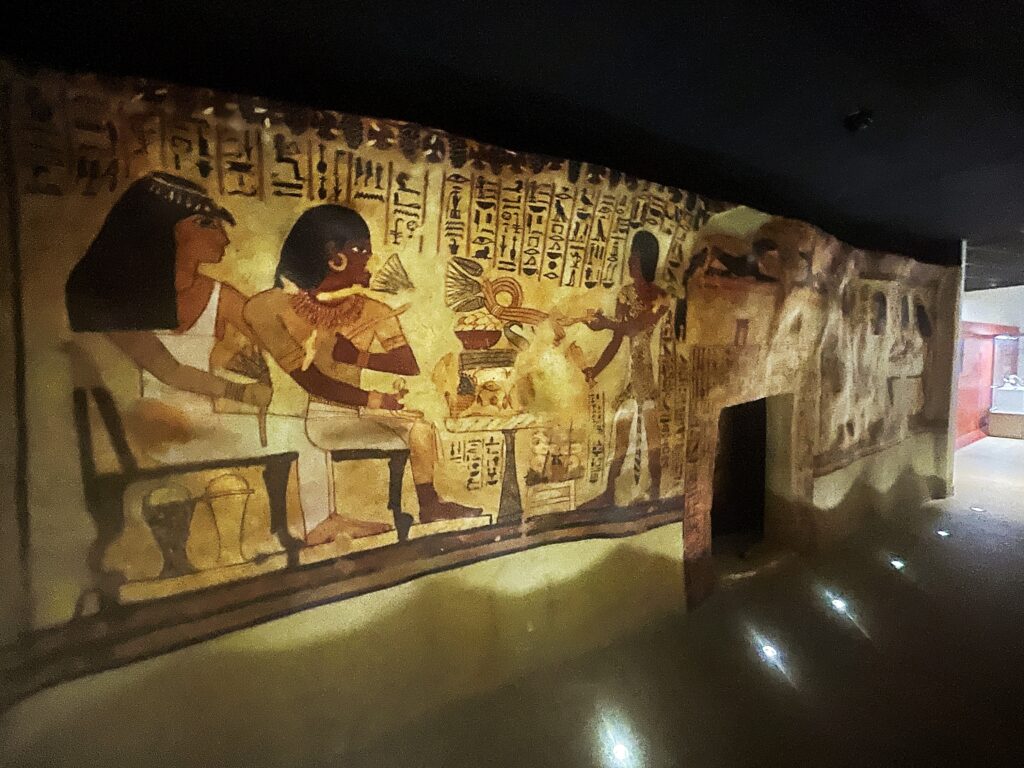 Daar lopen we tegen de Tourist office aan en nemen een boekje mee over alle bezienswaardigheden. Blijkt er gewoon een museum met een nagemaakte graftempel uit Egypte te zijn en nog wel net twee verdiepingen. Prachtig nagemaakt. De musea zijn gratis hier, dus ook nog even naar een ander museum gelopen, waar prehistorie, middeleeuwen en veel dieren staan. Ook wel weer bijzonder. De kerk kunnen we nog niet in omdat er filmopnames bezig zijn. Het is wel een enorme kerk. Vanavond nog maar even kijken.