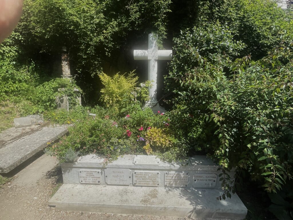 Na afloop het graf van Monet bezocht en dan door naar onze B&B in de Rue de Monet. 100 meter van zijn huis. Het heet Petit Nid d’Aigle, maar dat het zooo petit was hadden we ook niet verwacht. Knap dat ze in 10 M2 een huis/slaapkamer, keuken, douche en toilet hebben weten te proppen. Ach ja we doen het er maar mee. Het is weer 30 graden dus ff relaxen voordat we een restaurant gaan zoeken.