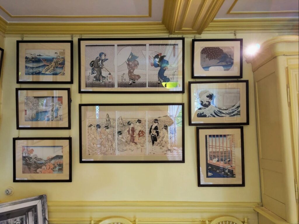 We zijn zeker niet alleen. Het is nu al bijzonder druk. De tuinen zijn echt prachtig onderhouden evenals het huis dat helemaal vol hangt met Japanse tekeningen die wij ook zo mooi vinden.