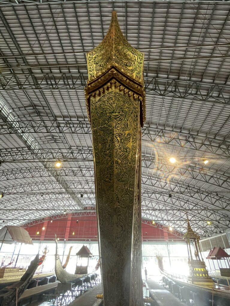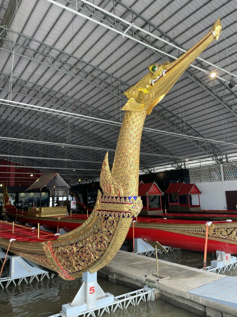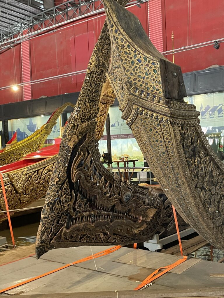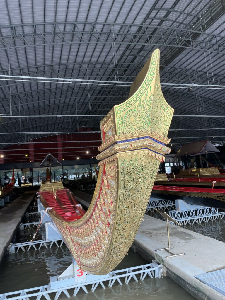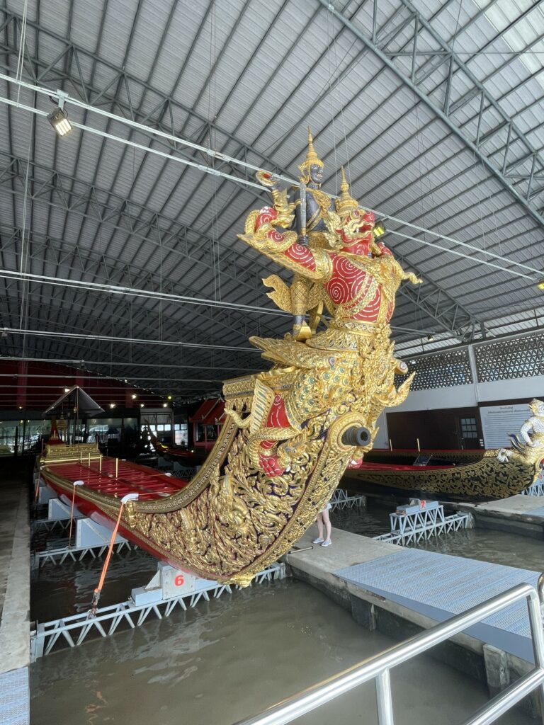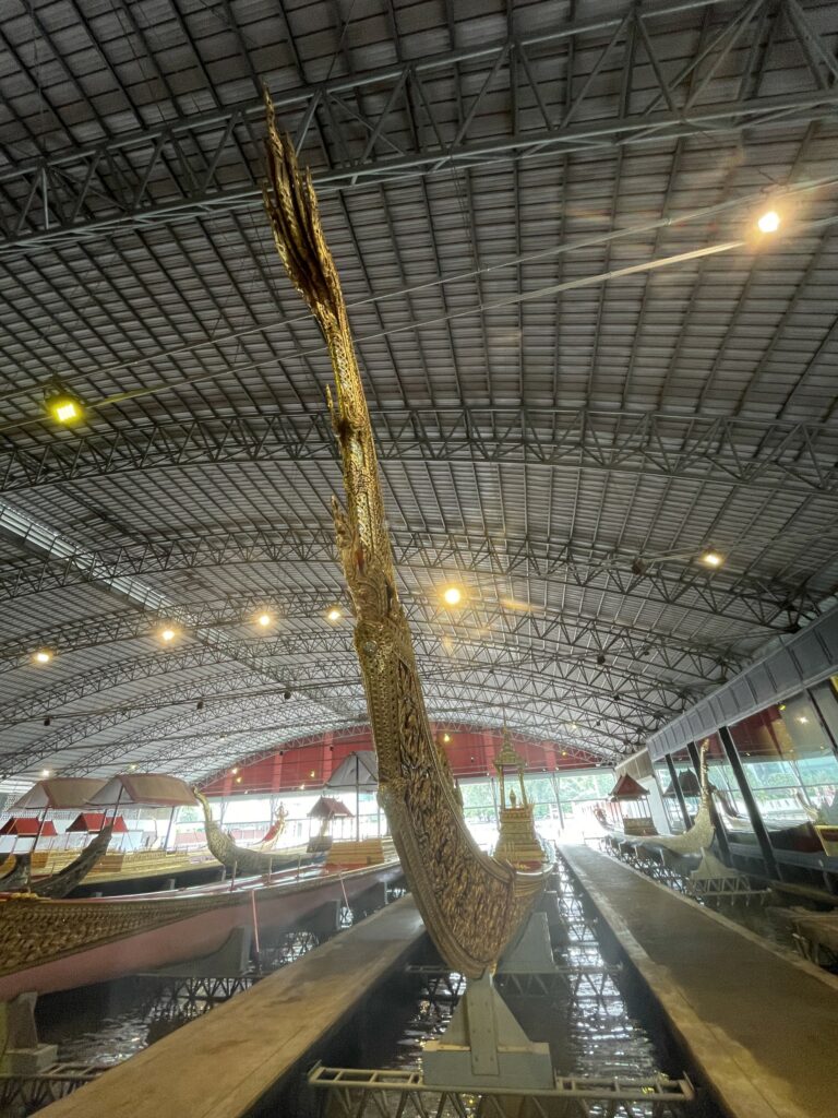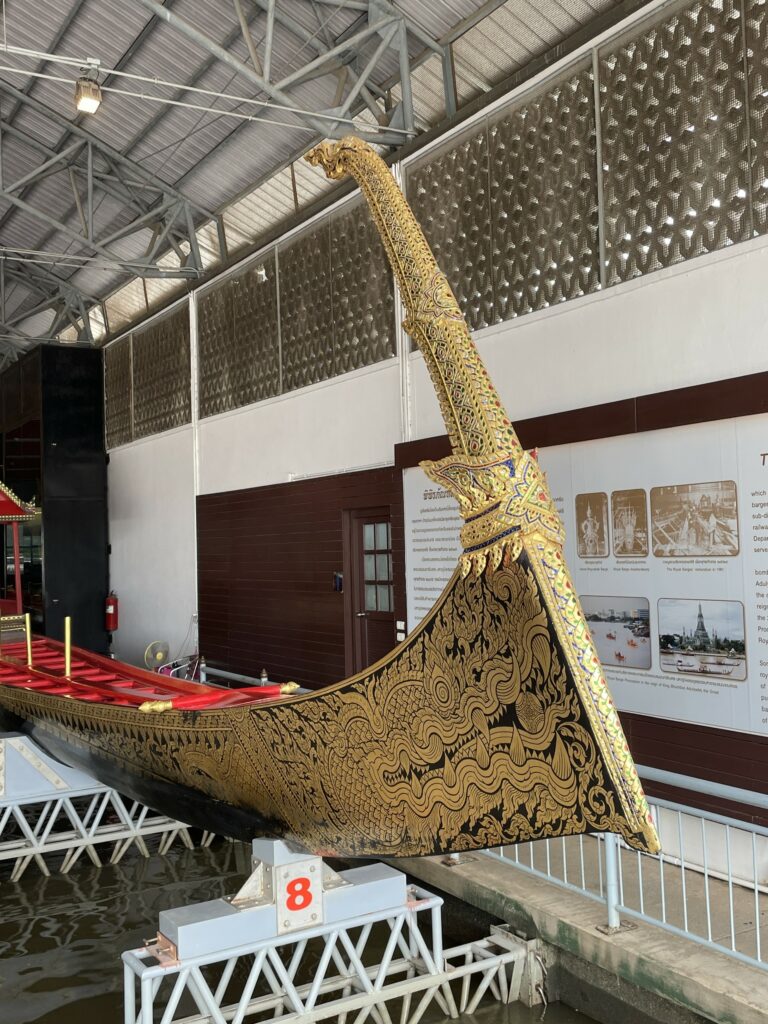 Vandaag onze laatste dag in Bangkok. Dat besteden we aan het Royal Barges National Museum (virtueel bezoek) oftewel het sloepenmuseum. Prachtige koninklijke boten die nu alleen nog voor grote ceremoniële gelegenheden gebruikt worden. Je moest apart een kaartje kopen als je wilde fotograferen en ook nog een als je een video wilde maken.