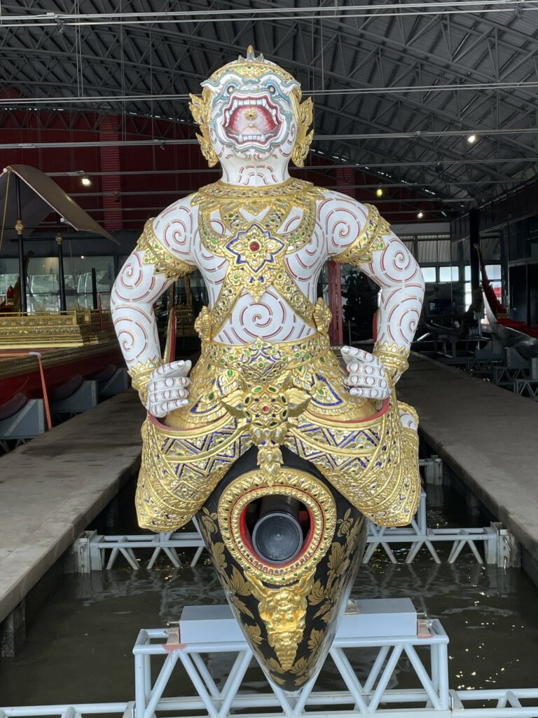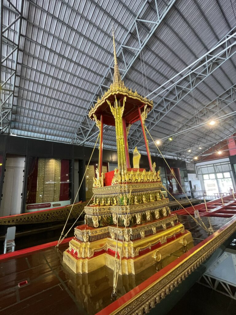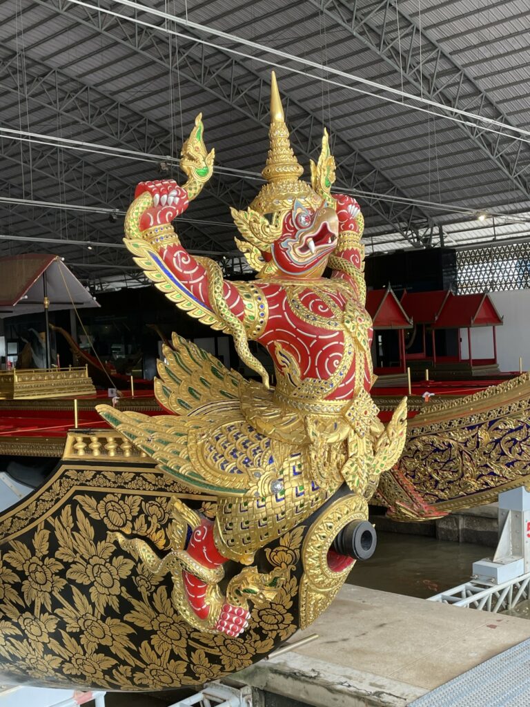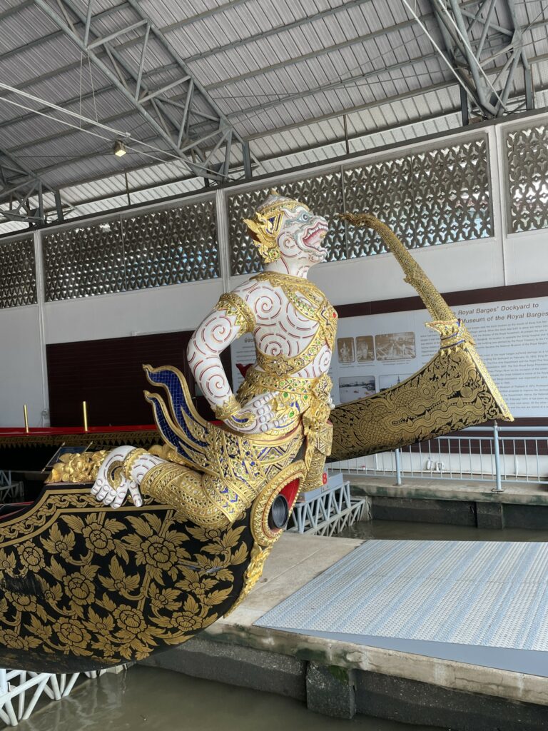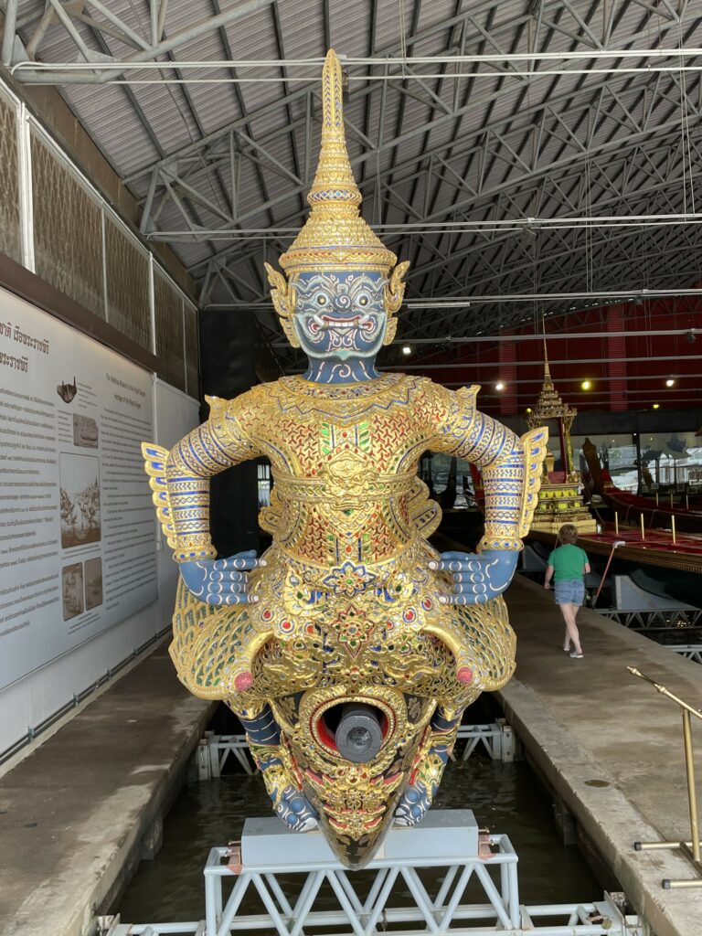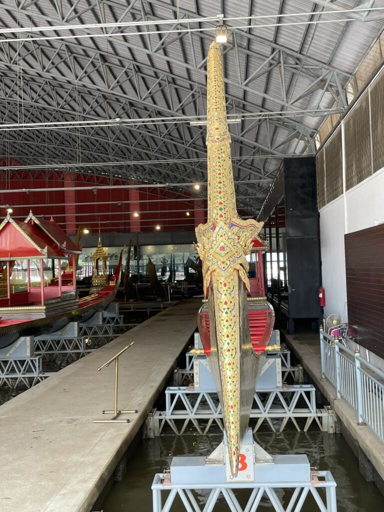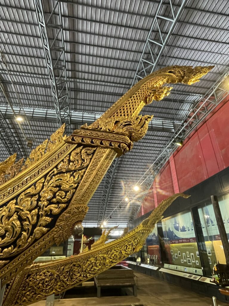 Vandaag onze laatste dag in Bangkok. Dat besteden we aan het Royal Barges National Museum (virtueel bezoek) oftewel het sloepenmuseum. Prachtige koninklijke boten die nu alleen nog voor grote ceremoniële gelegenheden gebruikt worden. Je moest apart een kaartje kopen als je wilde fotograferen en ook nog een als je een video wilde maken.