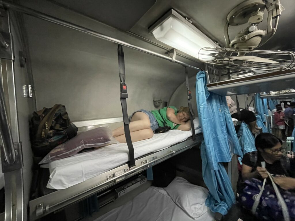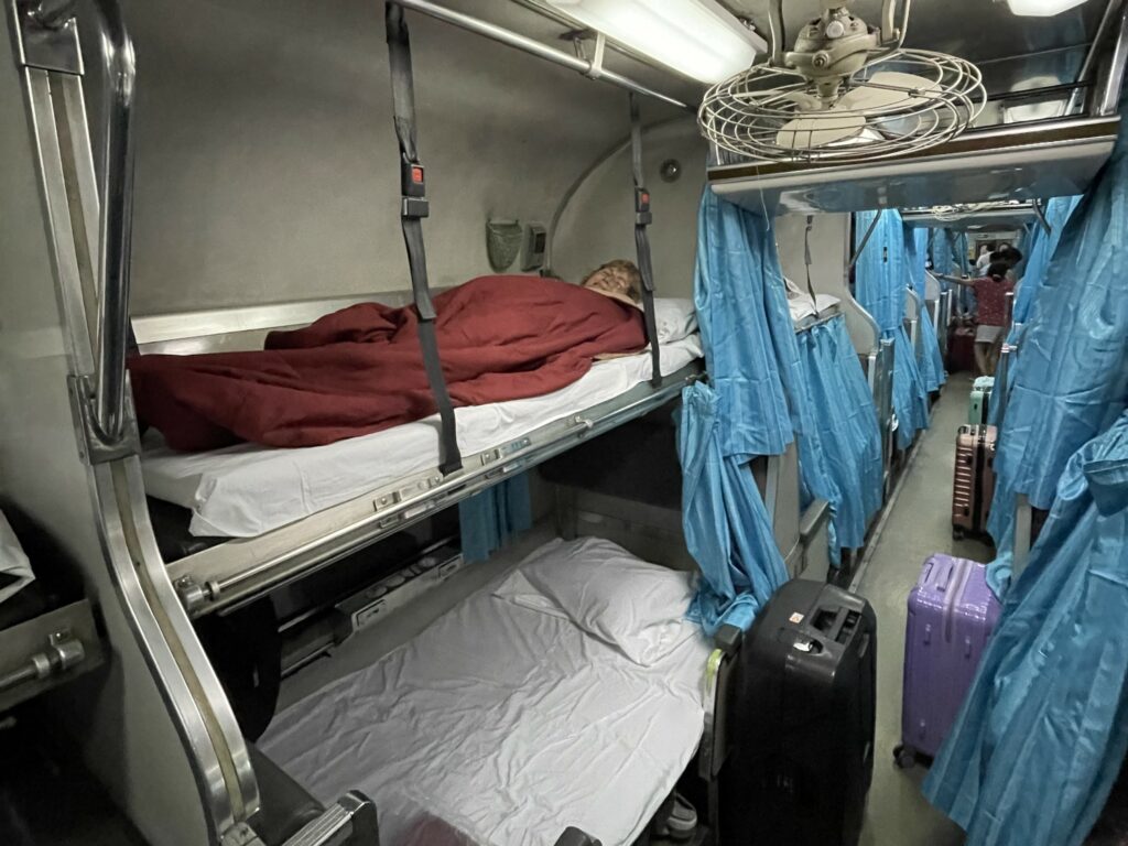 Dan word het tijd om naar het station te gaan voor de nacht trein we zijn nog iets te vroeg en besluiten om te wachten in de hotel lobby op onze taxi . Het station heeft meer weg van een vliegveld en je mag pas het perron op een half uur van te voren nadat van iedereen het kaartje in gecondoleerd bij de roltrappen naar het perron.