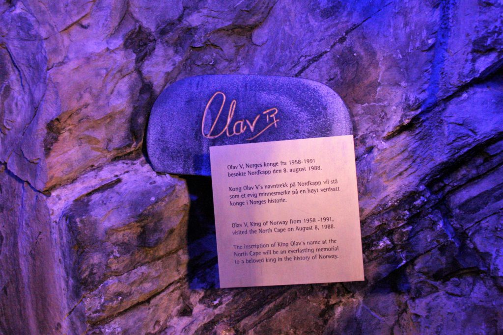 Toen wij op de Noordkaap waren zagen wij een stukje historie over Koning Olav. Hij had zijn naam op een steen geschreven toen hij op bezoek was op de Noordkaap. In de film van Asterix en de Vikingen komt een episode voor waarin een vader aan zijn zoon een tactiek probeert uit te leggen hoe je de vijand heel stil moet benaderen, net zo stil en geduldig als een steen… als hij vervolgens aan zijn zoon Olav vraagt of hij het begrepen heeft antwoord zijn niet al te snuggere zoon Olav: “Ik ben een steen”.