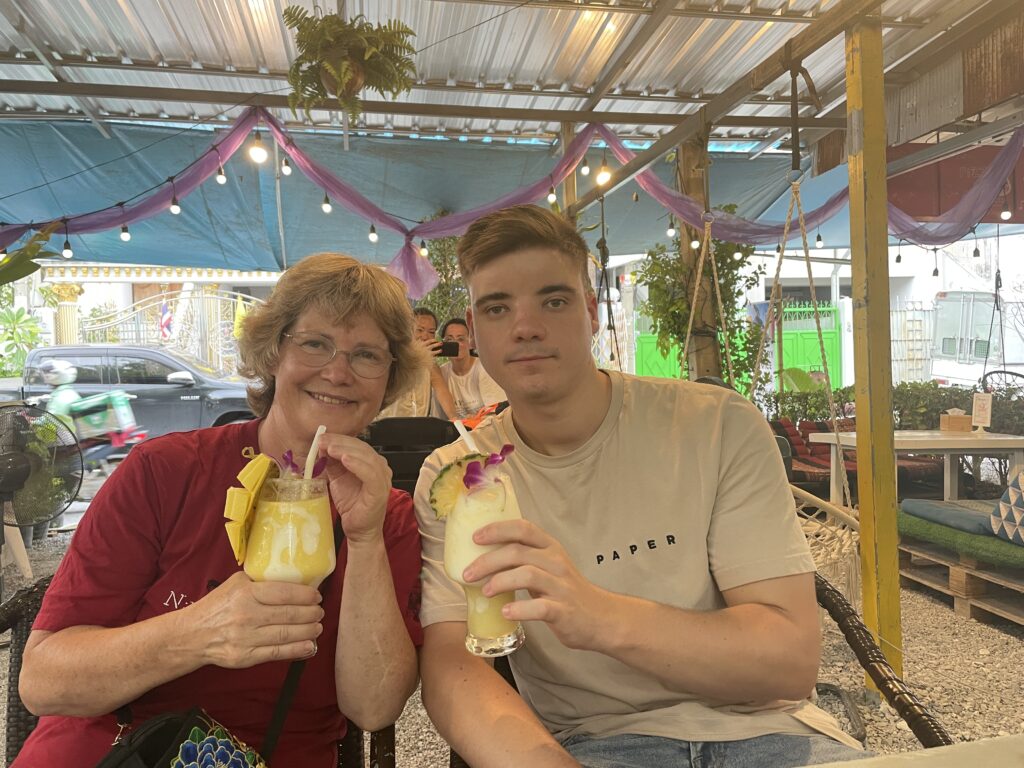 Het is vandaag ook bizar heet dus we zweten ons rot. Met de tuktuk terug naar ons hotel en daar om de hoek lekker geluncht.