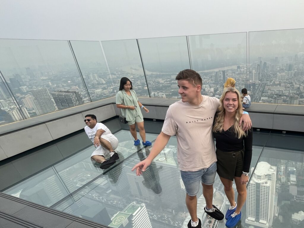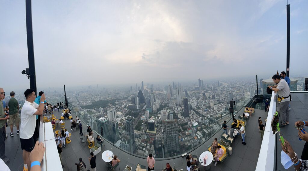 We wilden alle vier graag naar het King Power Mahanakhon gebouw om op 314 meter hoogte op een glazen vloer te staan maar voor dat we daar naar toe gaan eerst even een Starbucks overvallen . Ik vond het heel eng maar de anderen genoten met volle teugen. Helaas geen mooie zonsondergang maar wel mooie avond foto’s gemaakt.