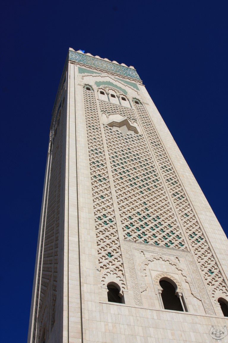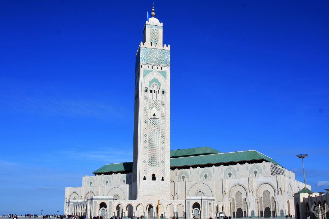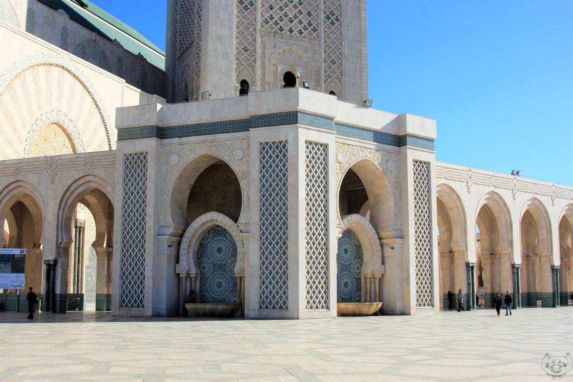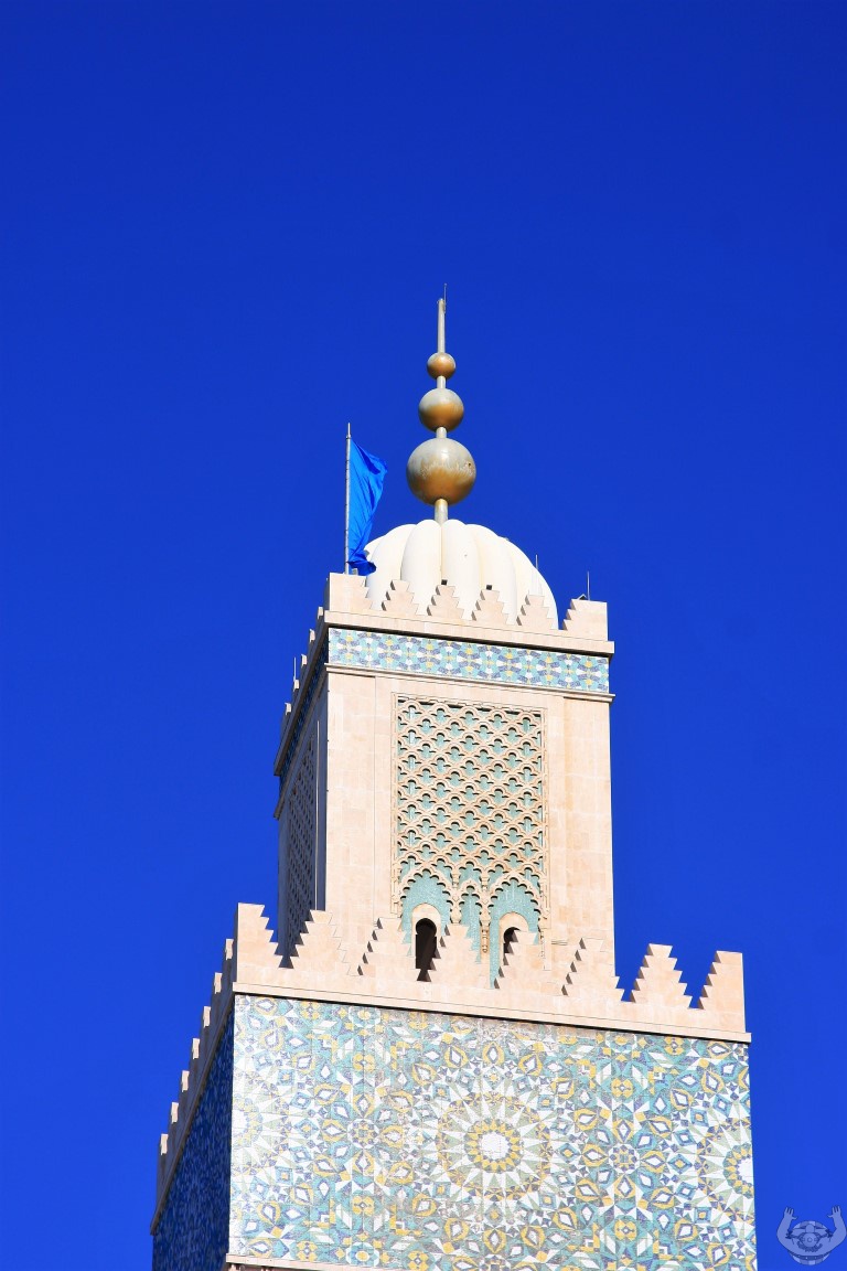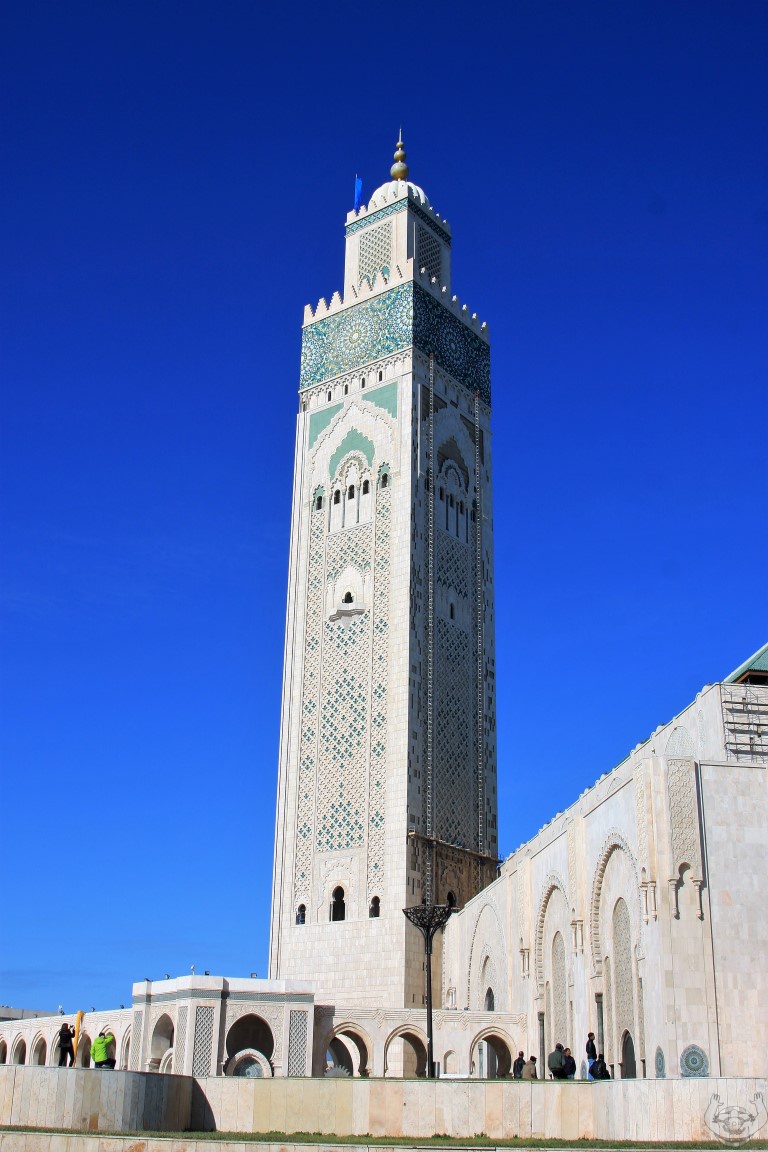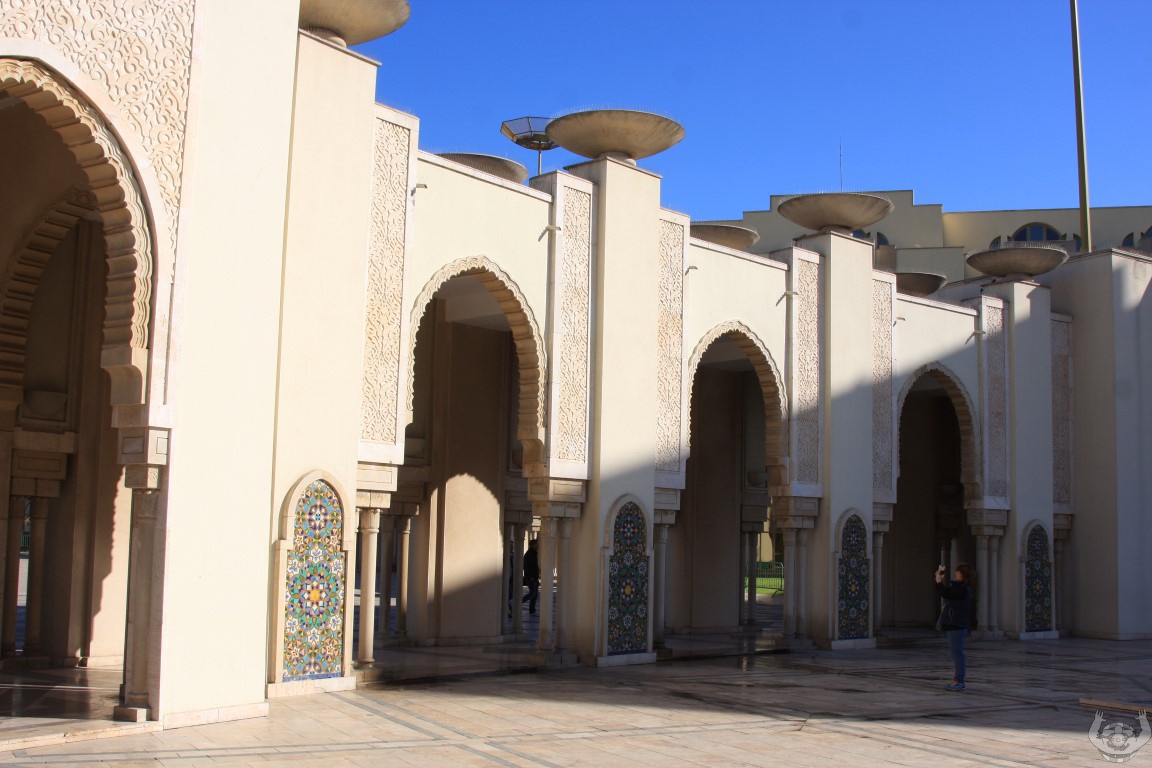 Place Mohammed V als eerste aangedaan. Er wordt een groot nieuw theater gebouwd. Daartegenover het paleis van justitie, gemeentehuis en een groot postkantoor. Op het plein een enorme fontein. Daarna bezoek aan de enorme Hassan II- moskee die deels gebouwd is op het water van de zee.