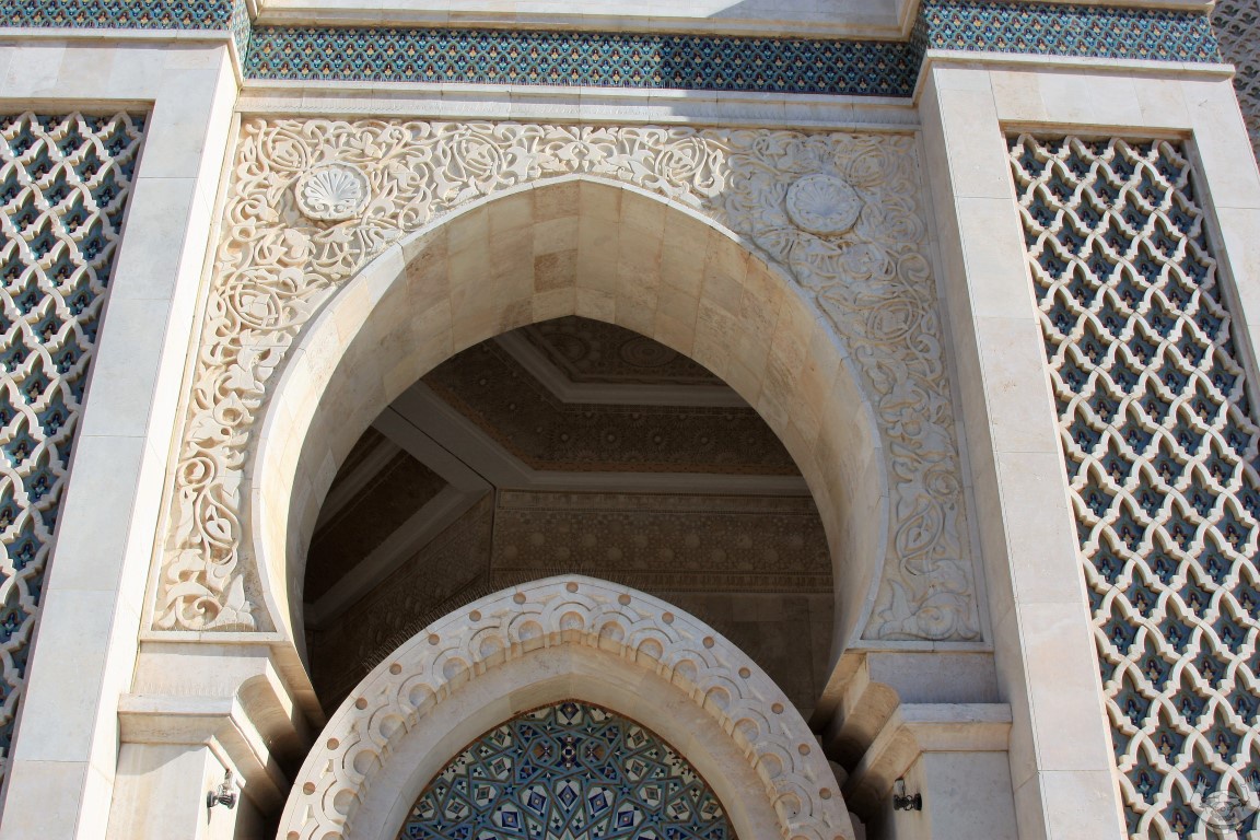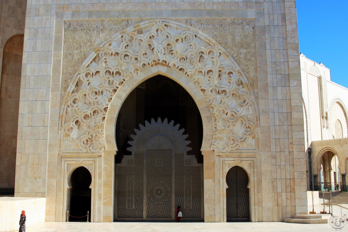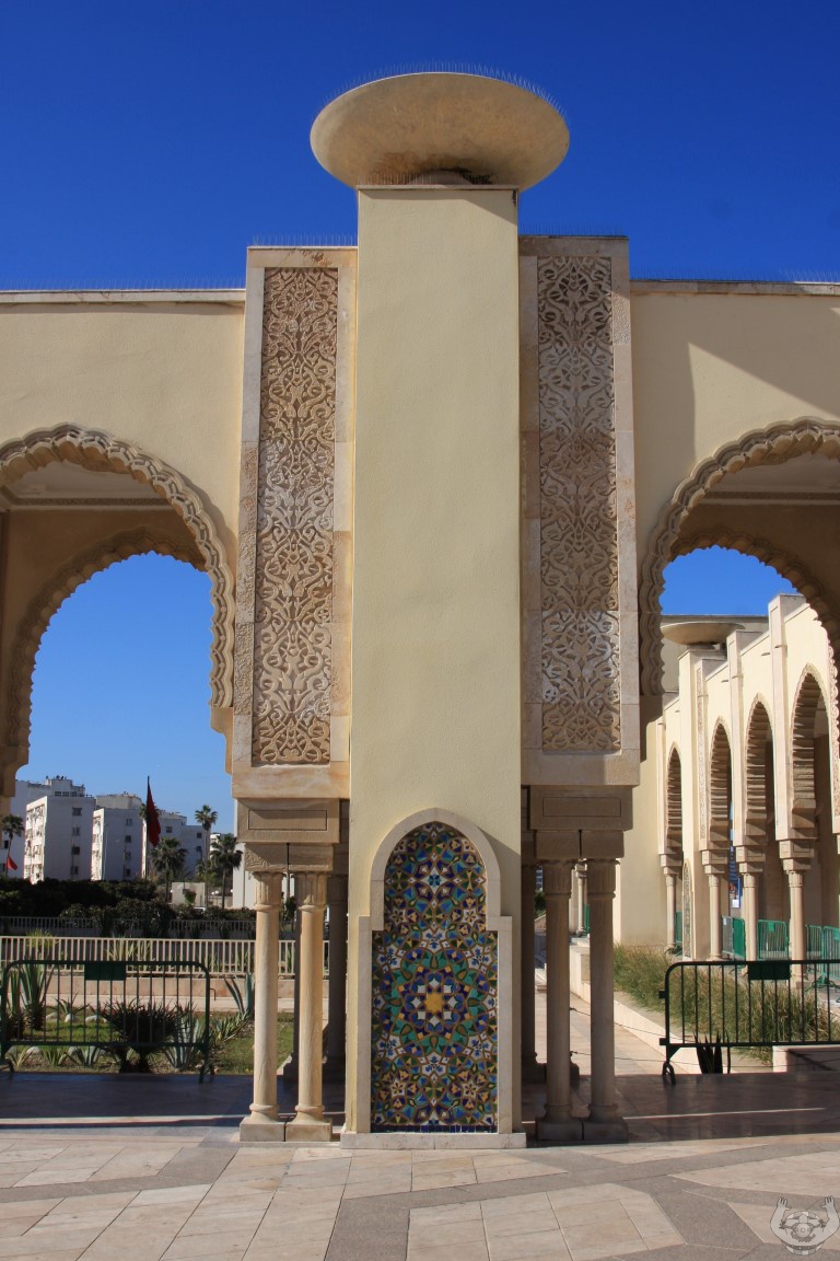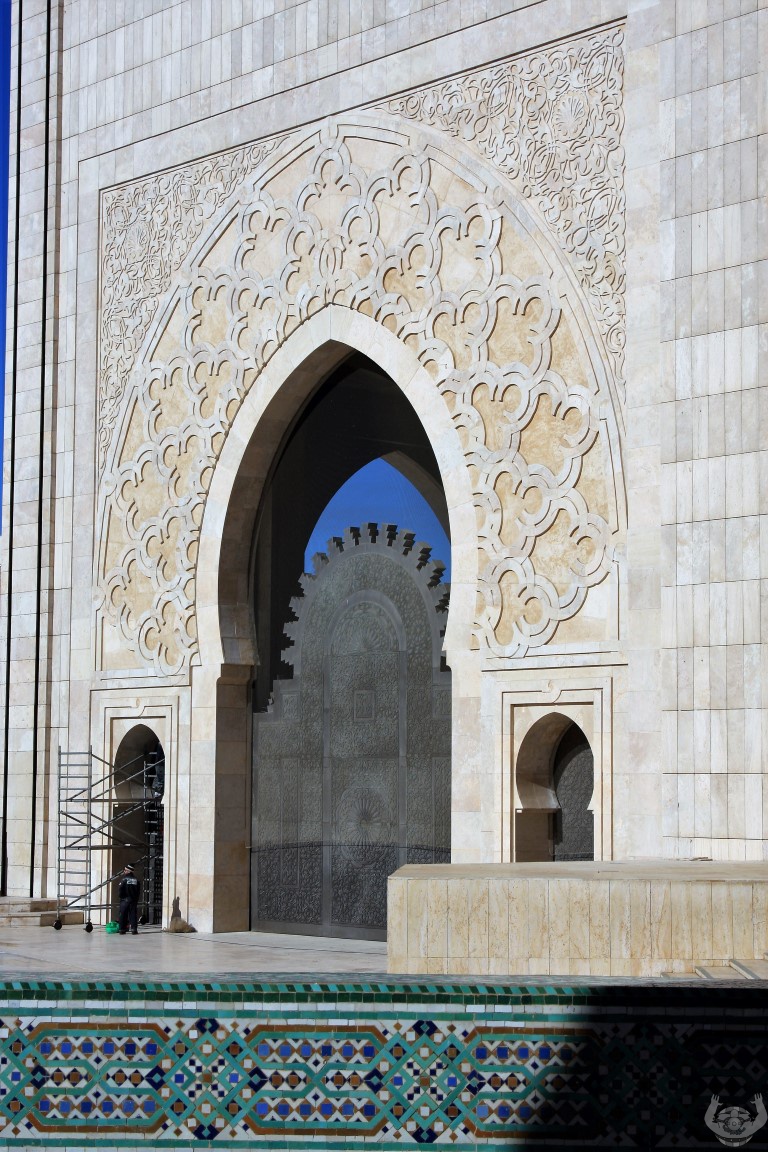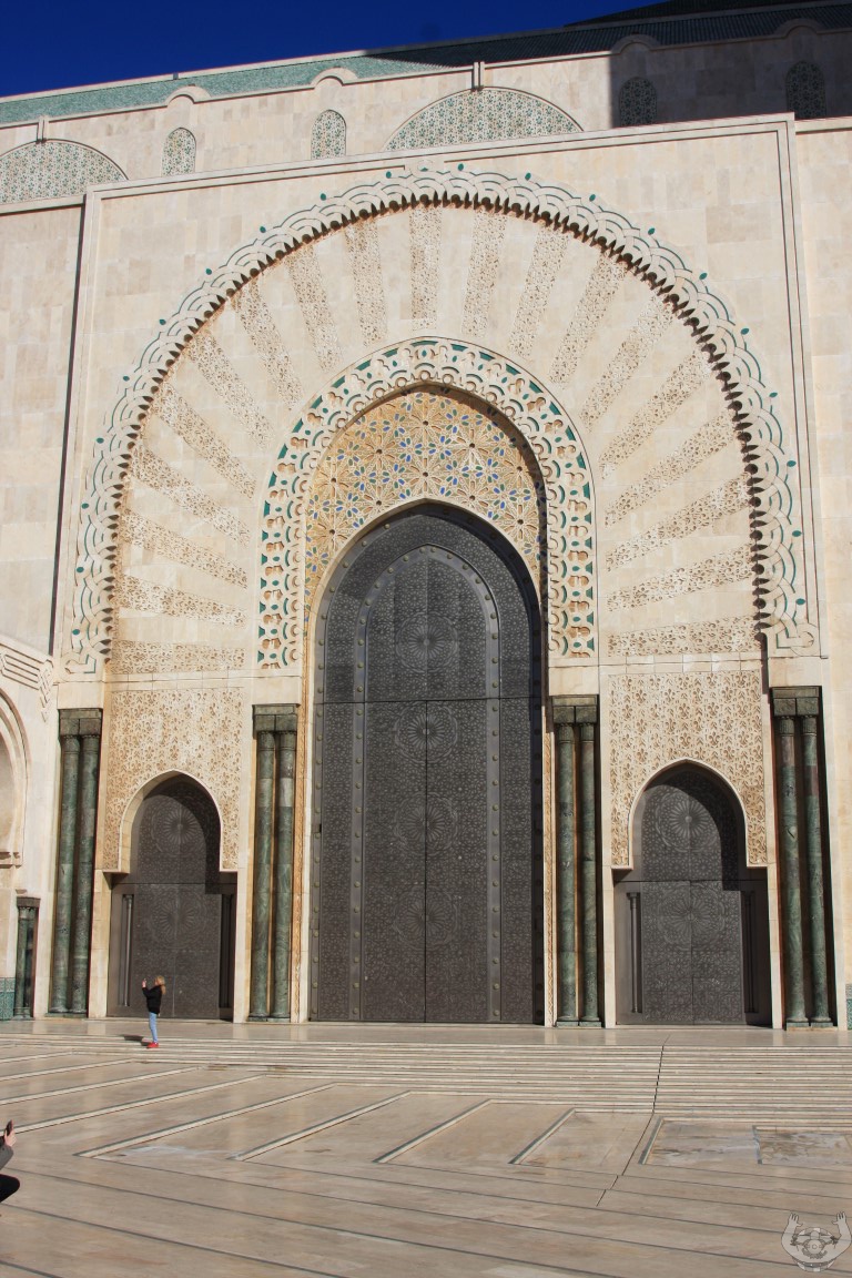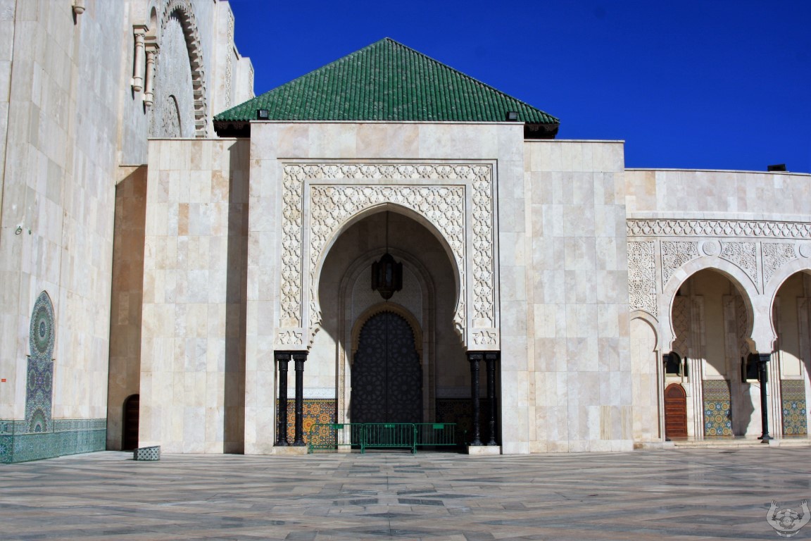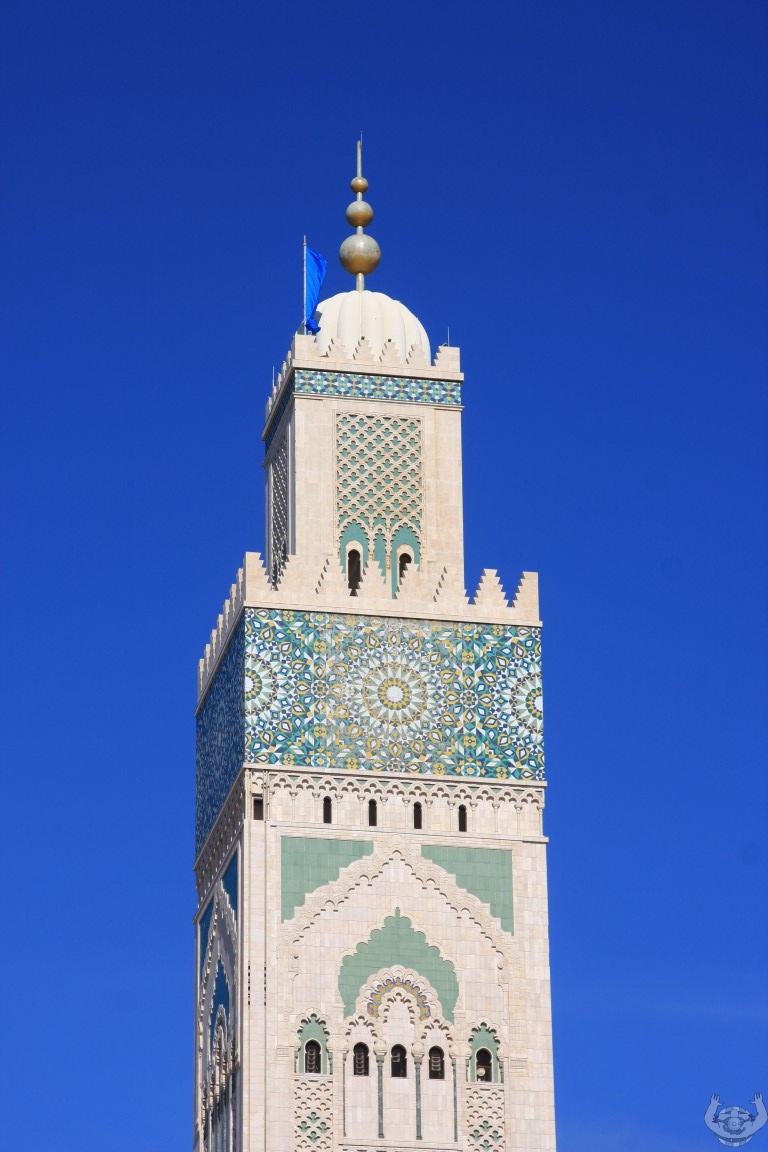 Place Mohammed V als eerste aangedaan. Er wordt een groot nieuw theater gebouwd. Daartegenover het paleis van justitie, gemeentehuis en een groot postkantoor. Op het plein een enorme fontein. Daarna bezoek aan de enorme Hassan II- moskee die deels gebouwd is op het water van de zee.