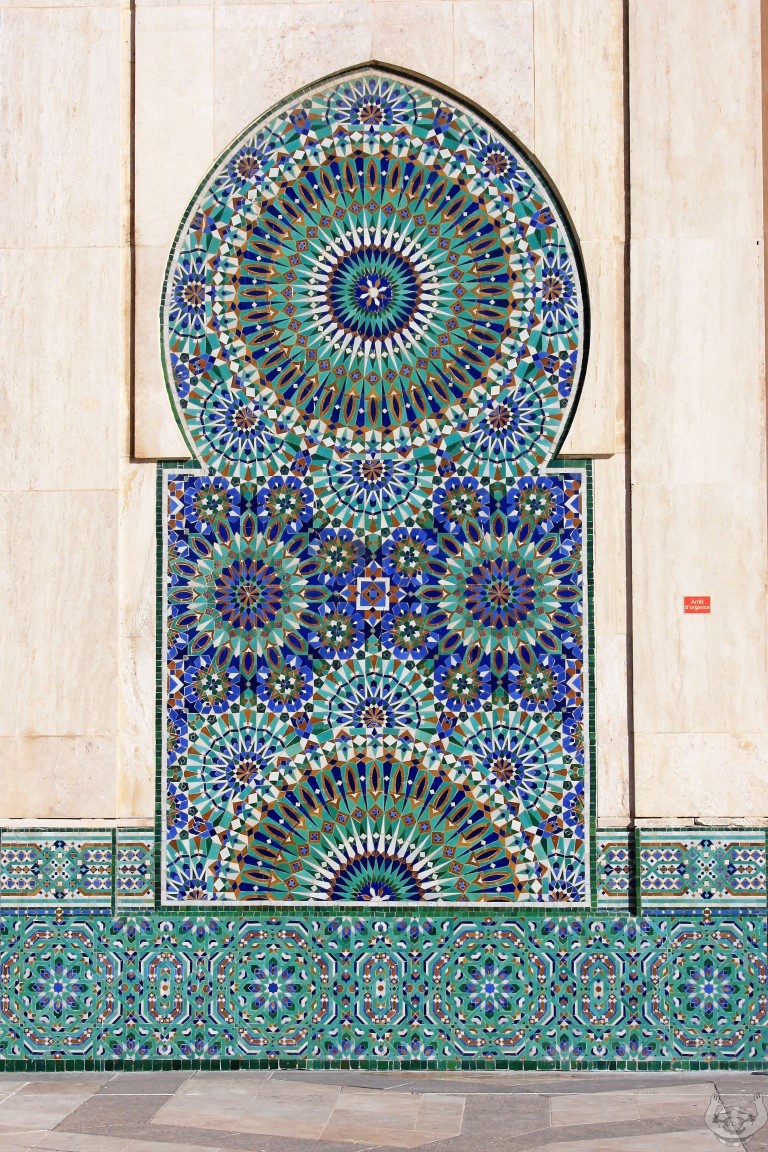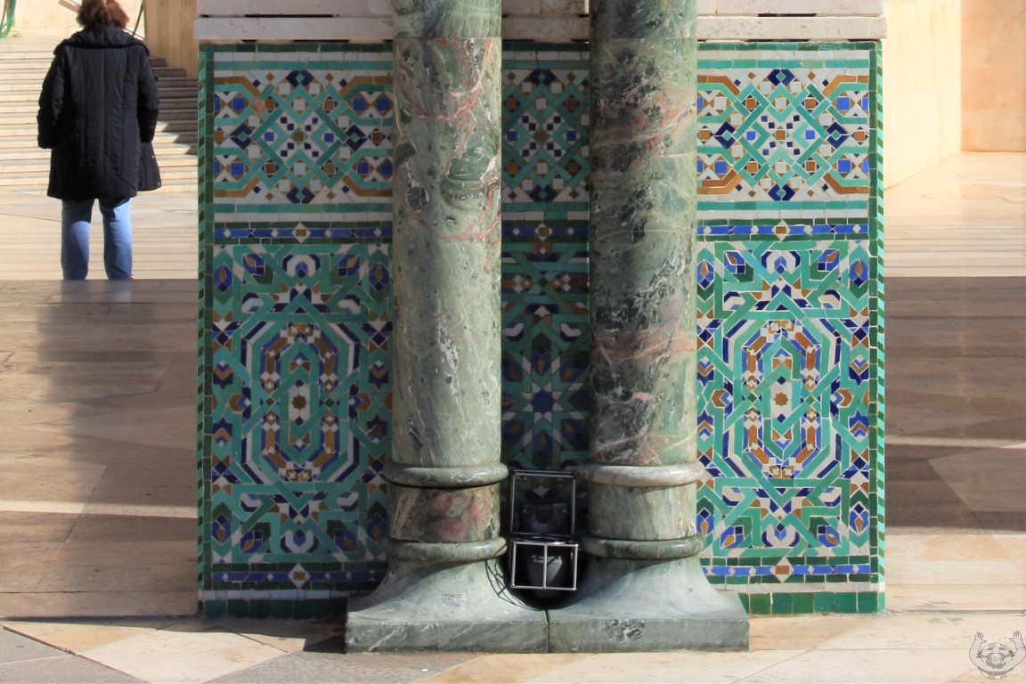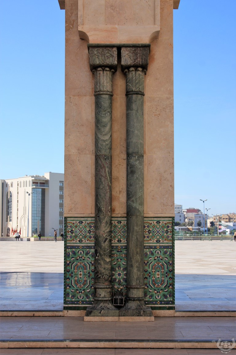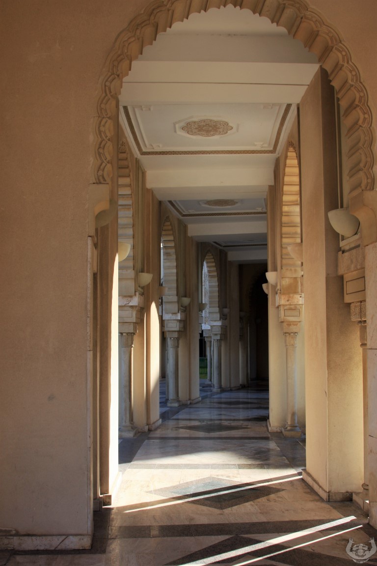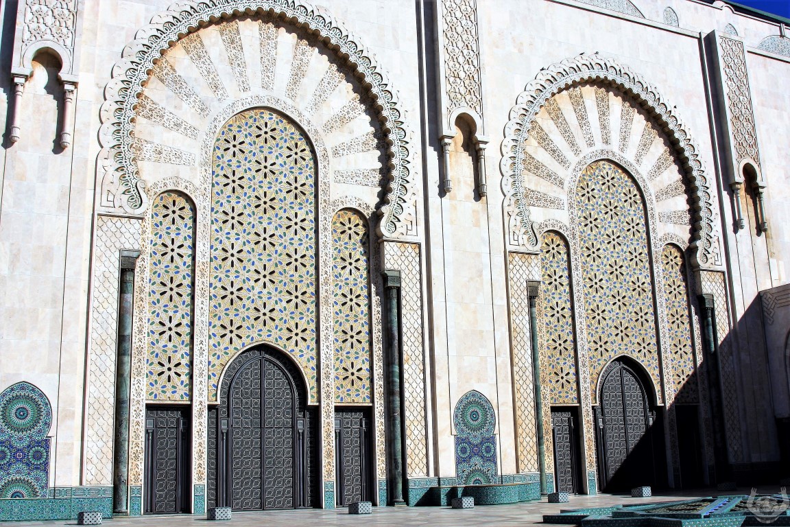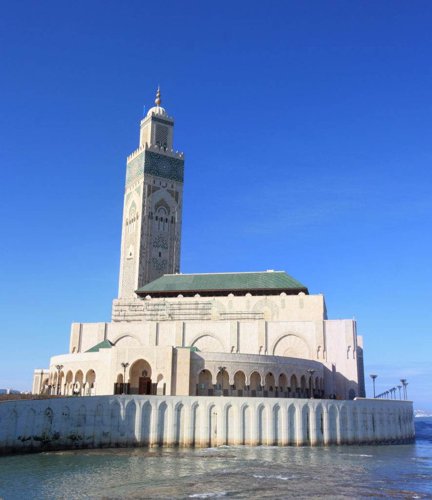 Place Mohammed V als eerste aangedaan. Er wordt een groot nieuw theater gebouwd. Daartegenover het paleis van justitie, gemeentehuis en een groot postkantoor. Op het plein een enorme fontein. Daarna bezoek aan de enorme Hassan II- moskee die deels gebouwd is op het water van de zee.
