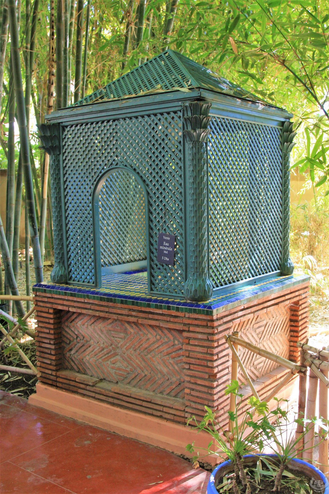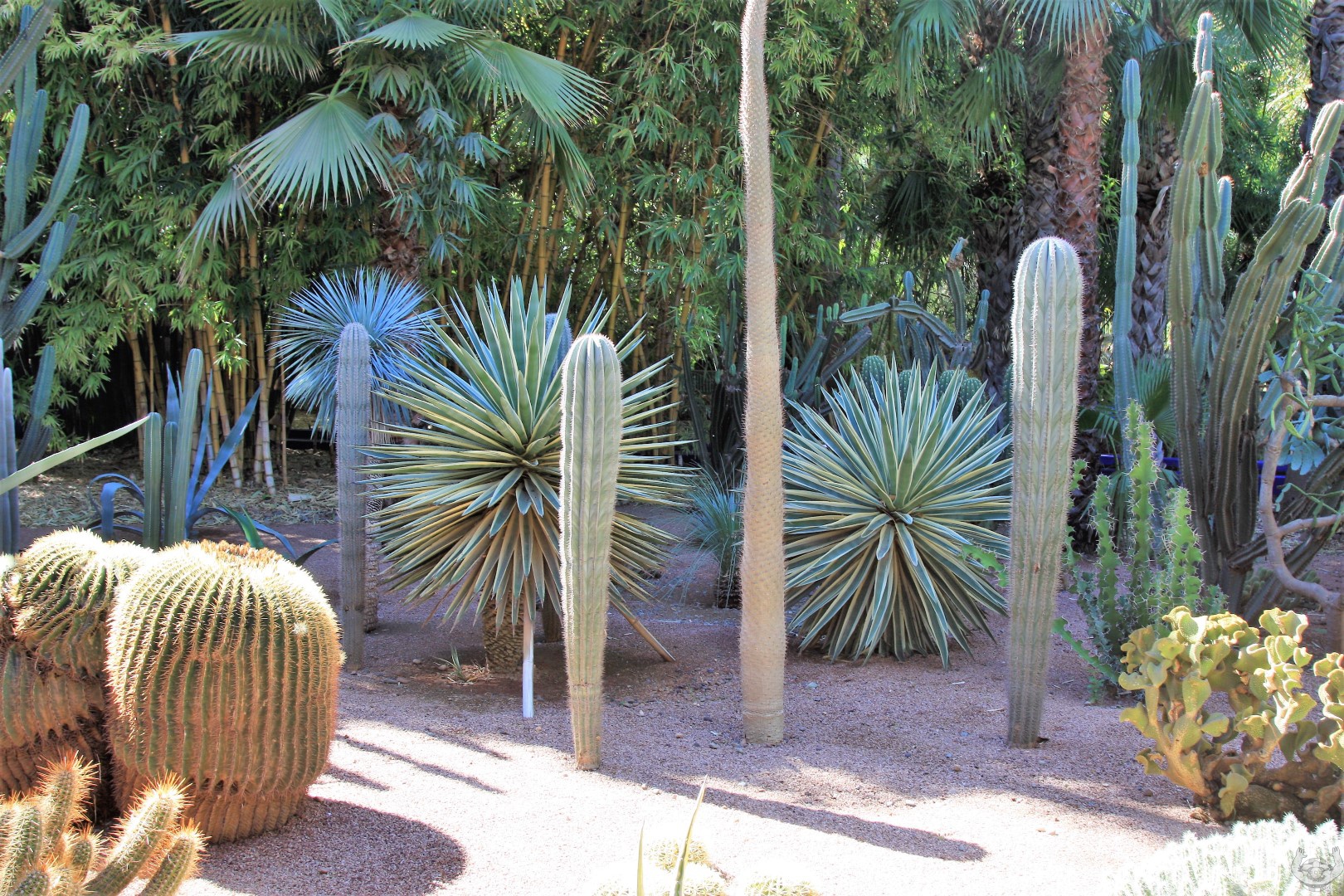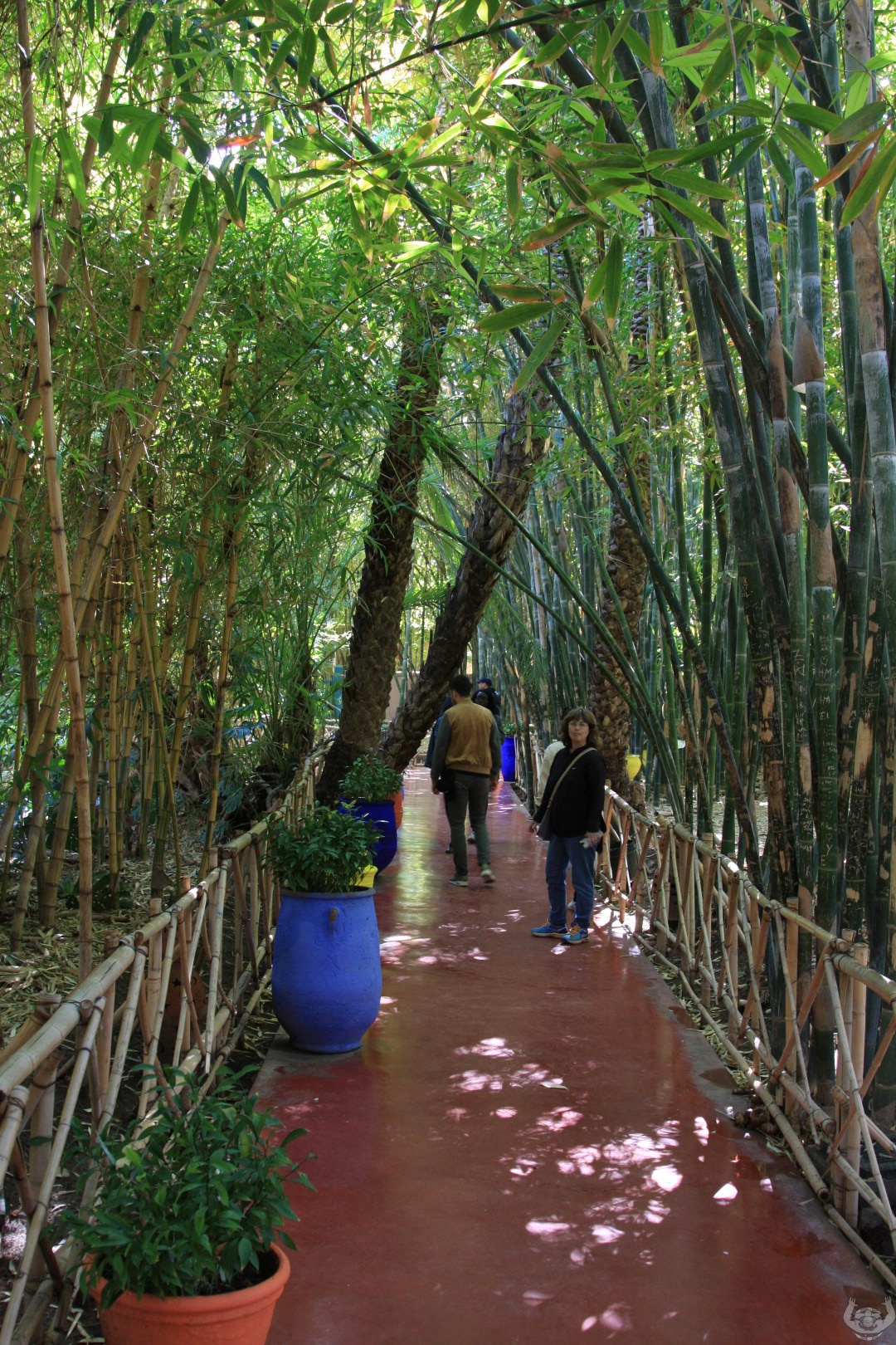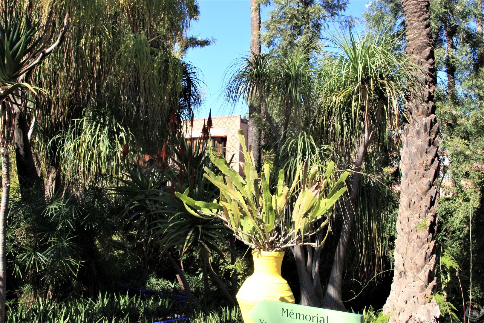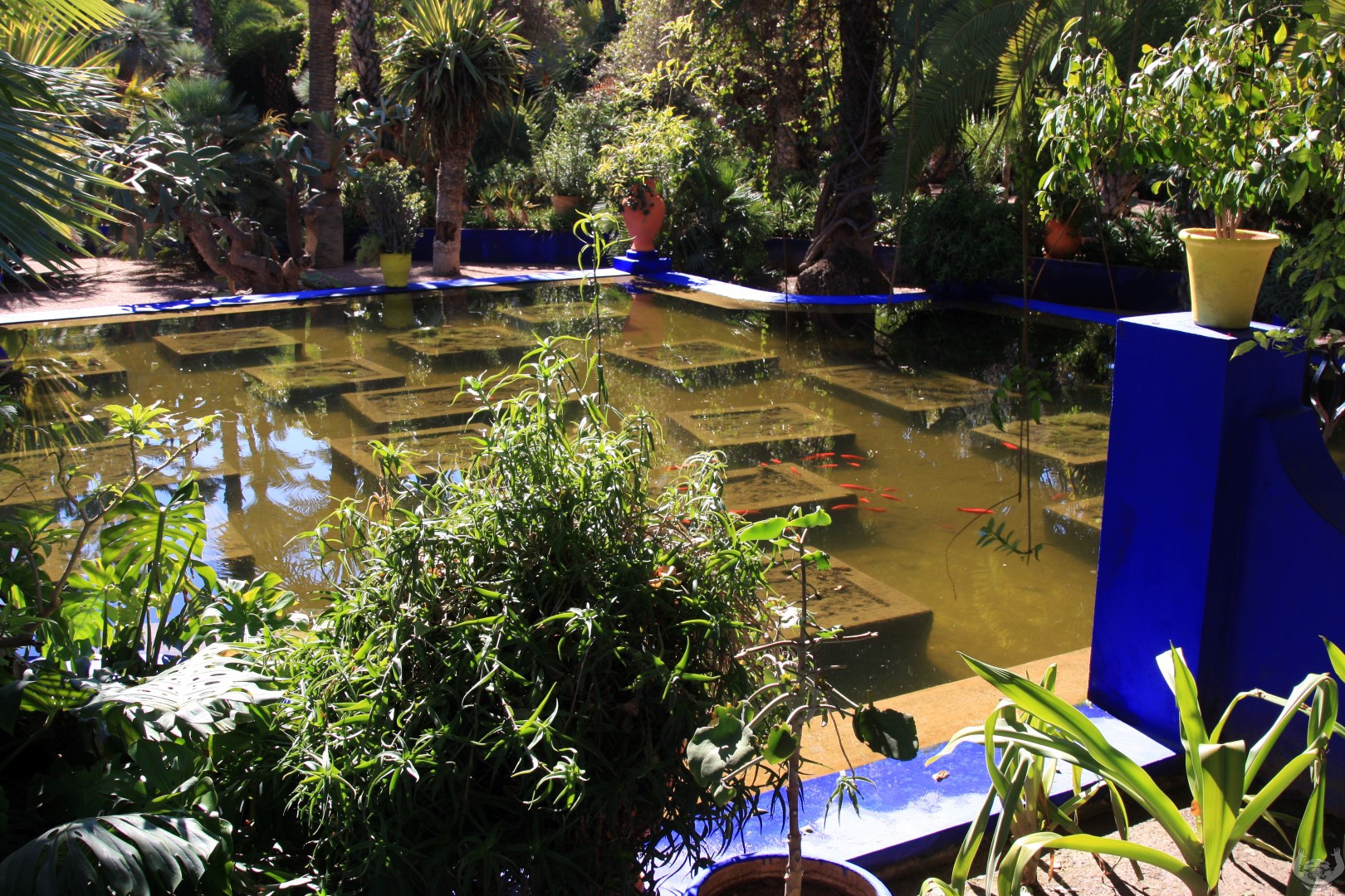 Na het ontbijt op pad naar de botanische tuin van Yves Saint Laurant. Een uur in de rij voor de kassa. Jardin Majorelle. Prachtige tuin met veel Majorelle blauwe accenten.