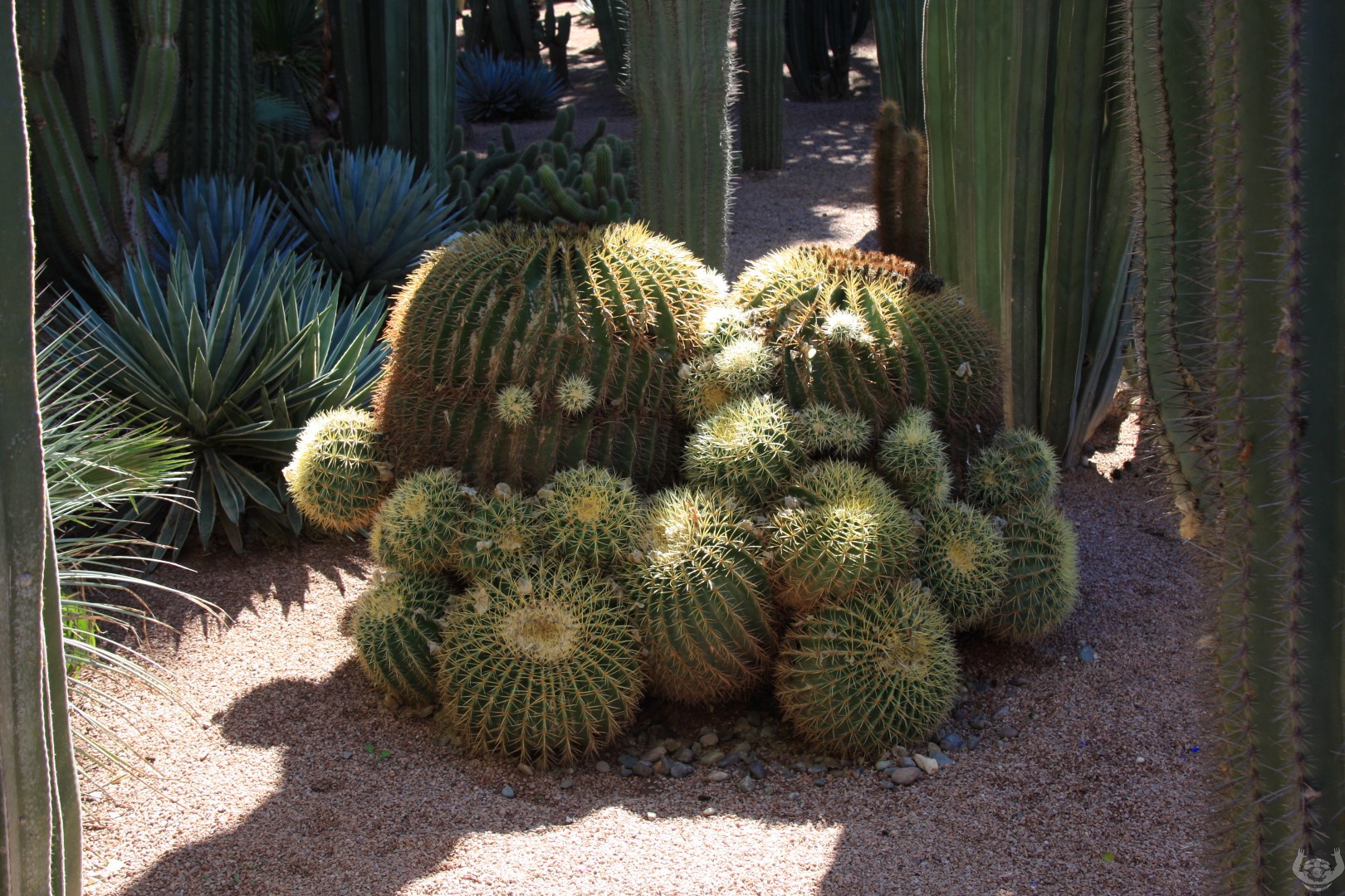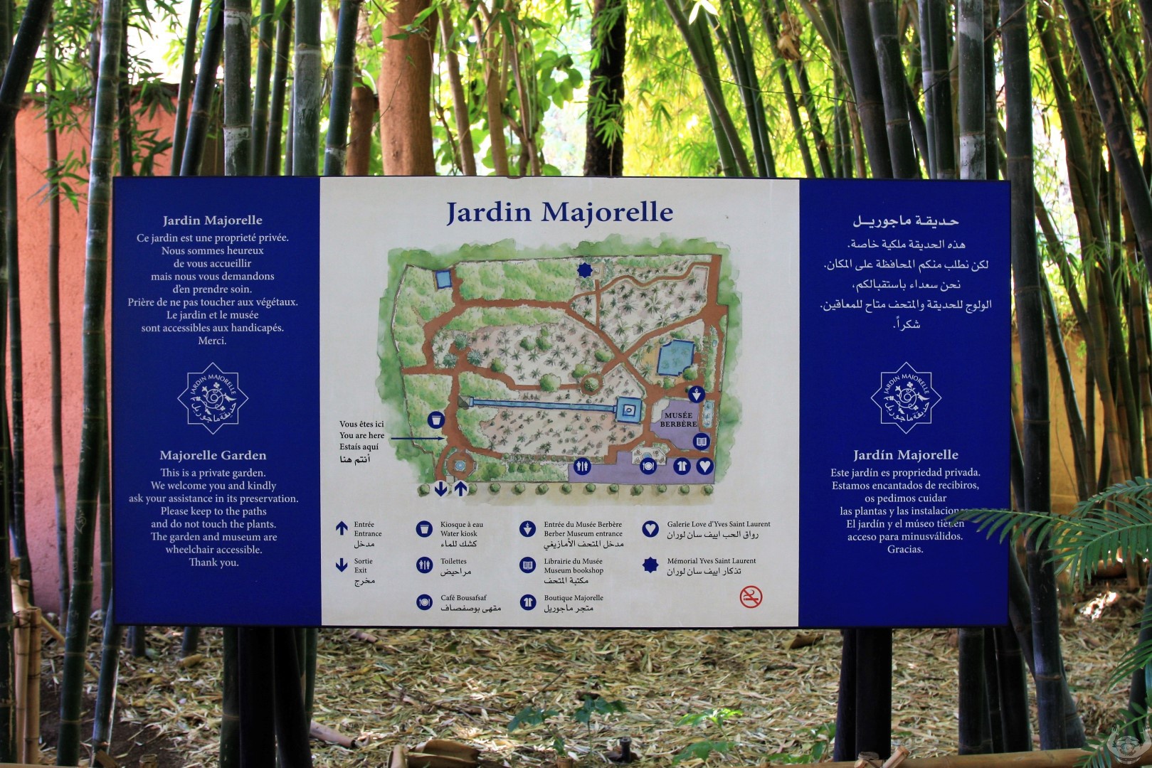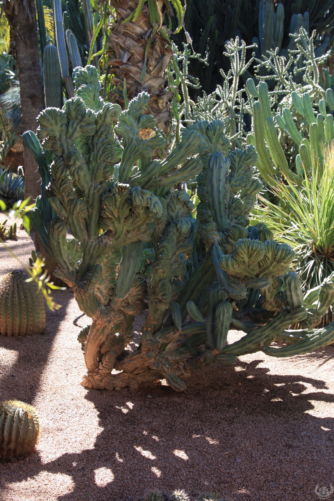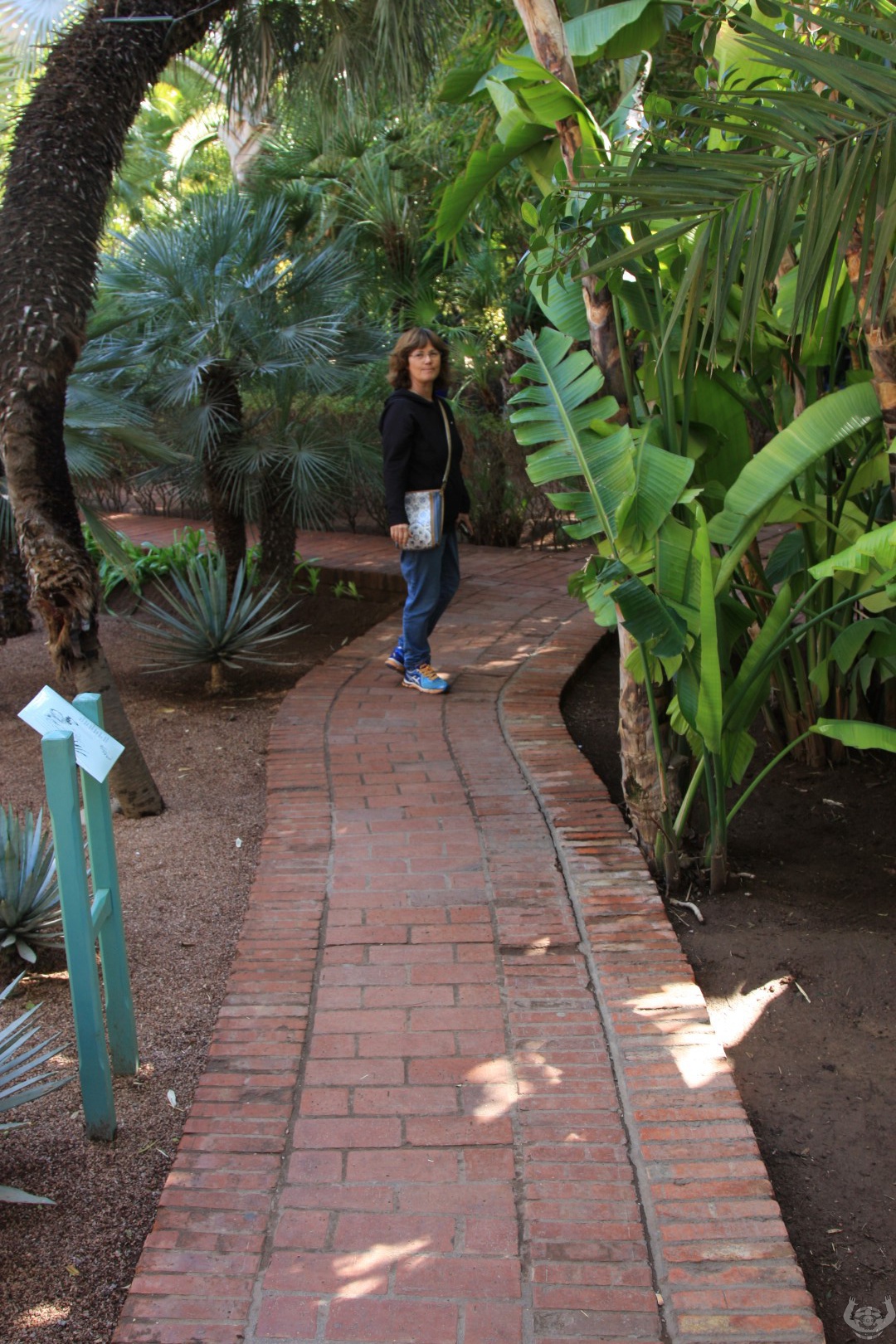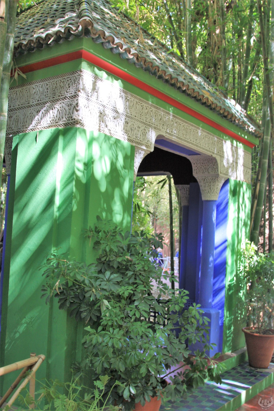 Na het ontbijt op pad naar de botanische tuin van Yves Saint Laurant. Een uur in de rij voor de kassa. Jardin Majorelle. Prachtige tuin met veel Majorelle blauwe accenten.
