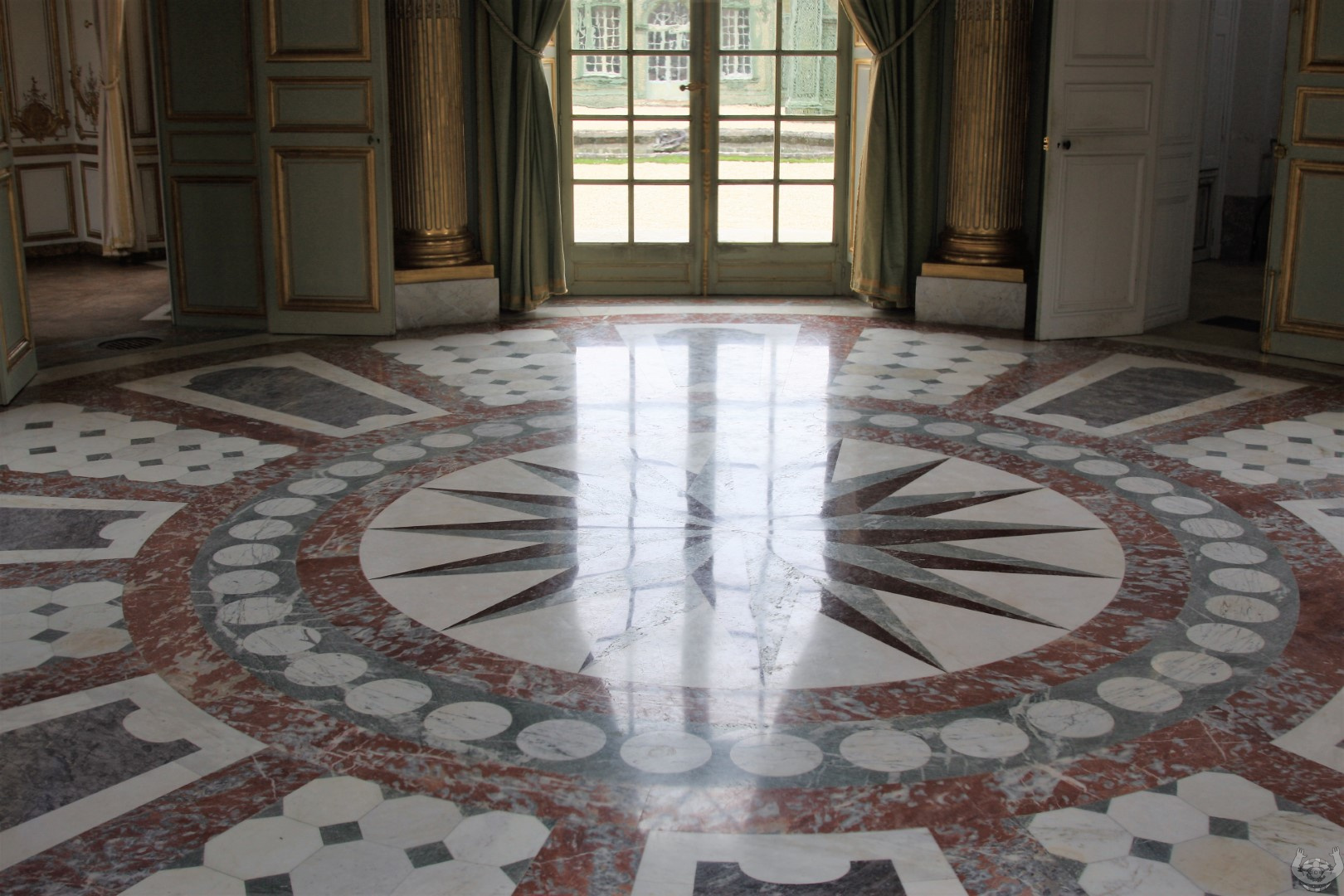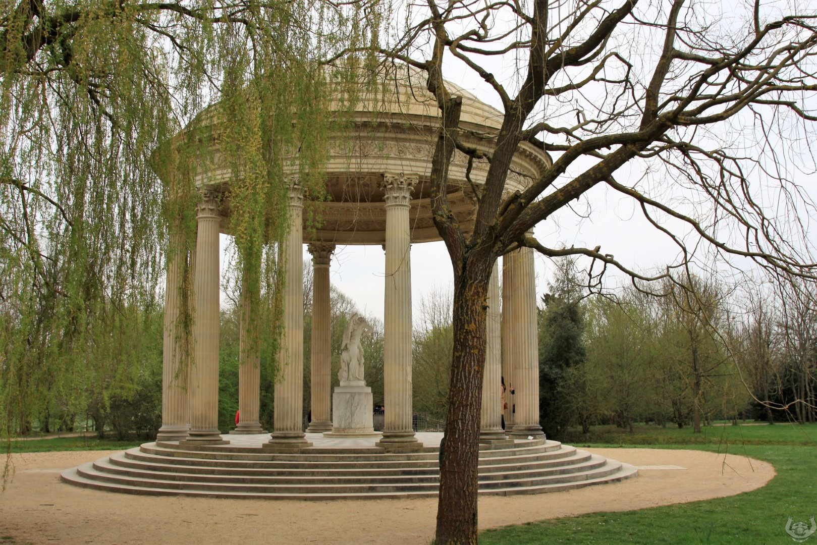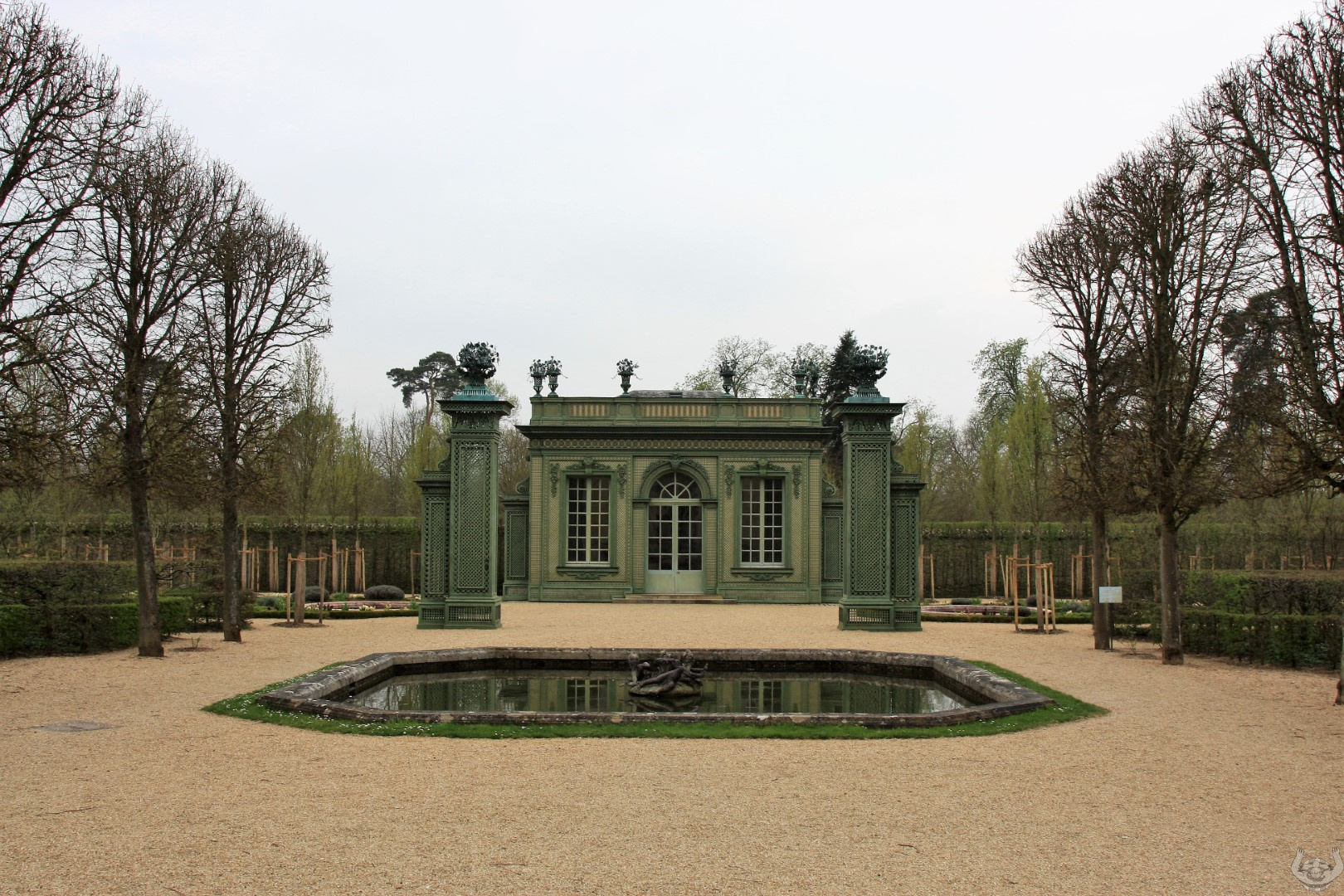 In de tuin van het petit Trianon staat het Domaine de Marie Antoinette een mooie stenen koepel waar wij in Nederland theeconcerten in zouden geven. Heel fraai allemaal. Als je wat verder doorloopt kom je bij een oud molentje en een oud boerderijtje uit 1760. Het lijkt wel een knibbel knabbel knuisje huisje, maar de heks hebben we niet gevonden. Daarna verder door de tuin gelopen waarna we bij nog meer mooie huisjes kwamen en heel veel in bloei staande tulpenbomen en bloesems. Prachtig! Daarna terug naar le petit Trianon om door de Nederlandse bloementuin met Tulpen, Hyacinten en Narcissen door te steken naar le Grand Trianon; een buitenverblijf dat de zonnekoning Louis XIV gebouwd heeft voor zijn minnares…. prachtig met roze marmer ingelegd aan de buitenkant met ook weer een prachtige tuin. Deze tuin heeft maar weinig vijvers en nog minder fonteinen. Die vind je dus allemaal bij het enorme hoofdverblijf.