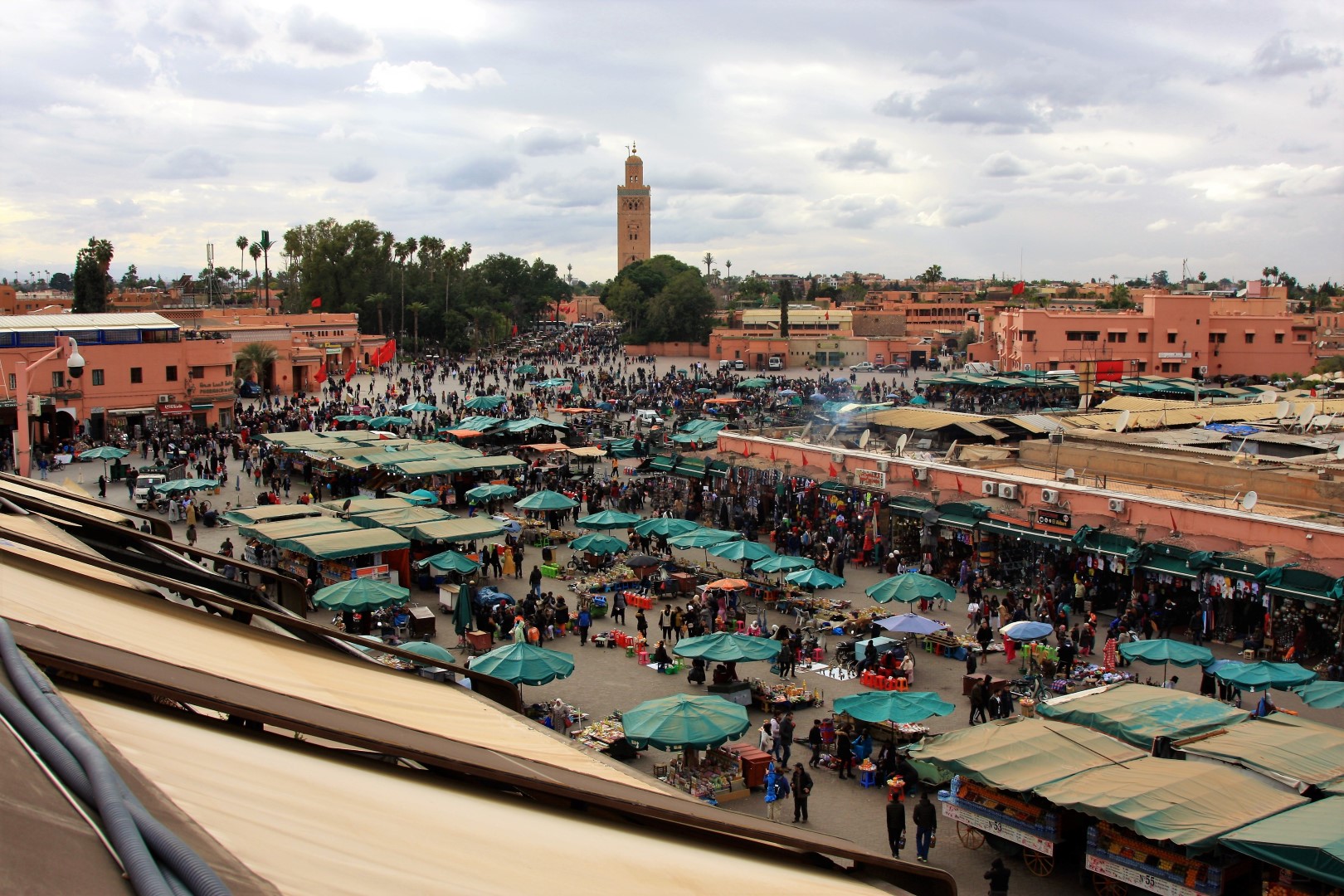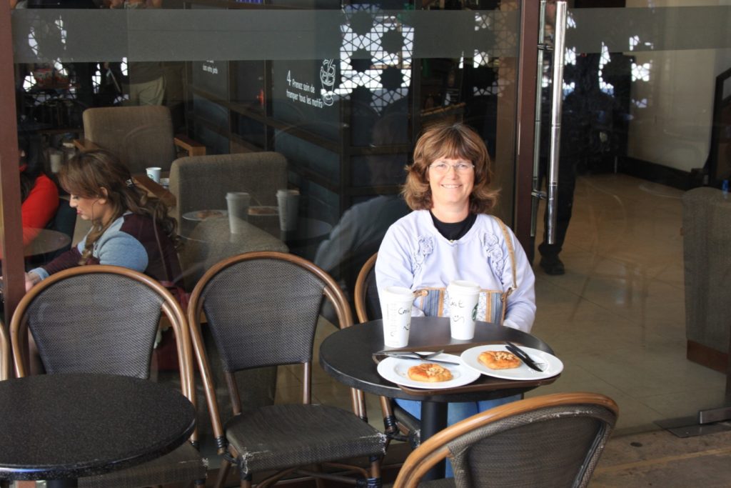 Het programma is gewijzigd waardoor de vrije dag in Marrakesh vandaag is en niet pas aan het eind van de vakantie. Beetje uitgeslapen maar het ontbijtbuffet nog wel gehaald. Hebben ze een Nescafe koffiemachine neergezet… geen goed begin van de dag dus dan maar snel naar de Starbucks. Het is helaas niet zo’n mooi weer vandaag.