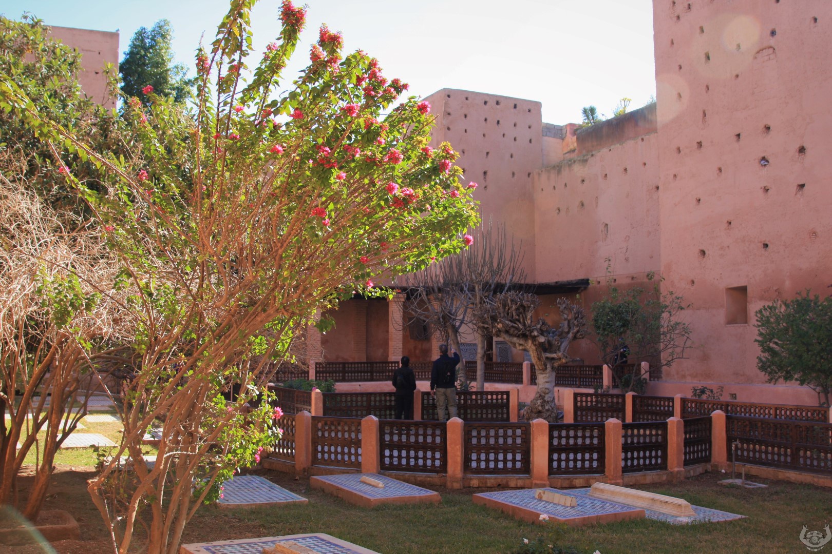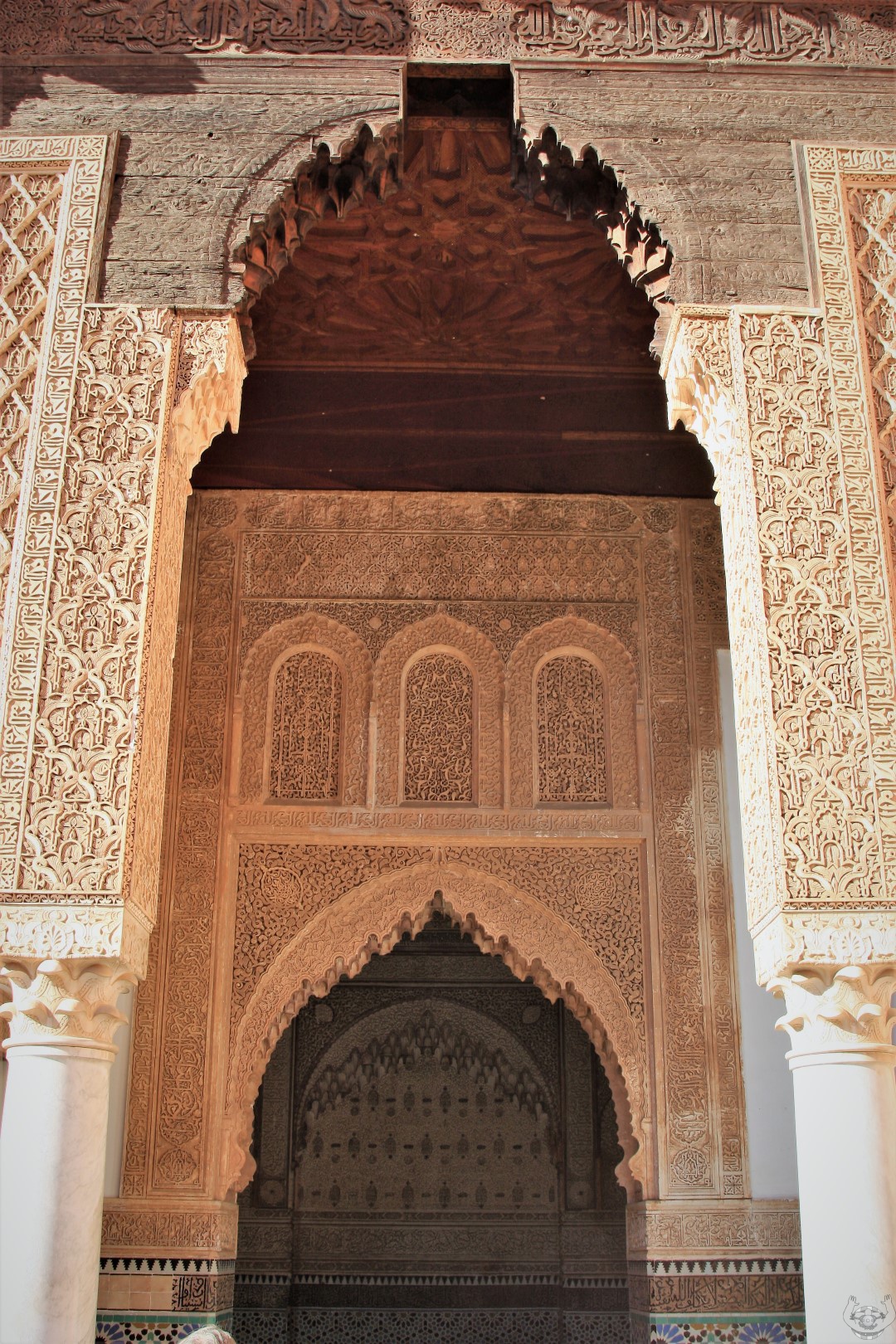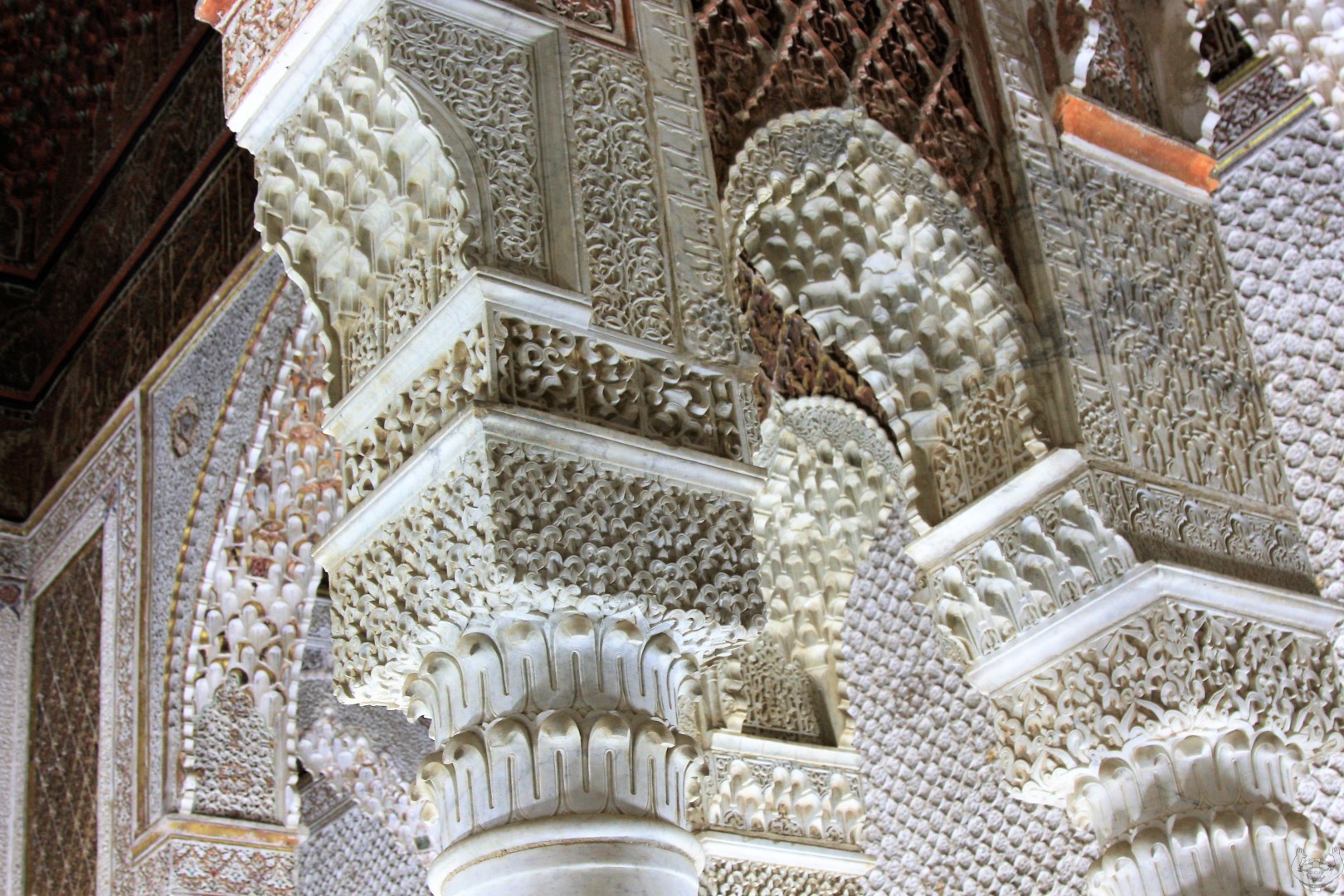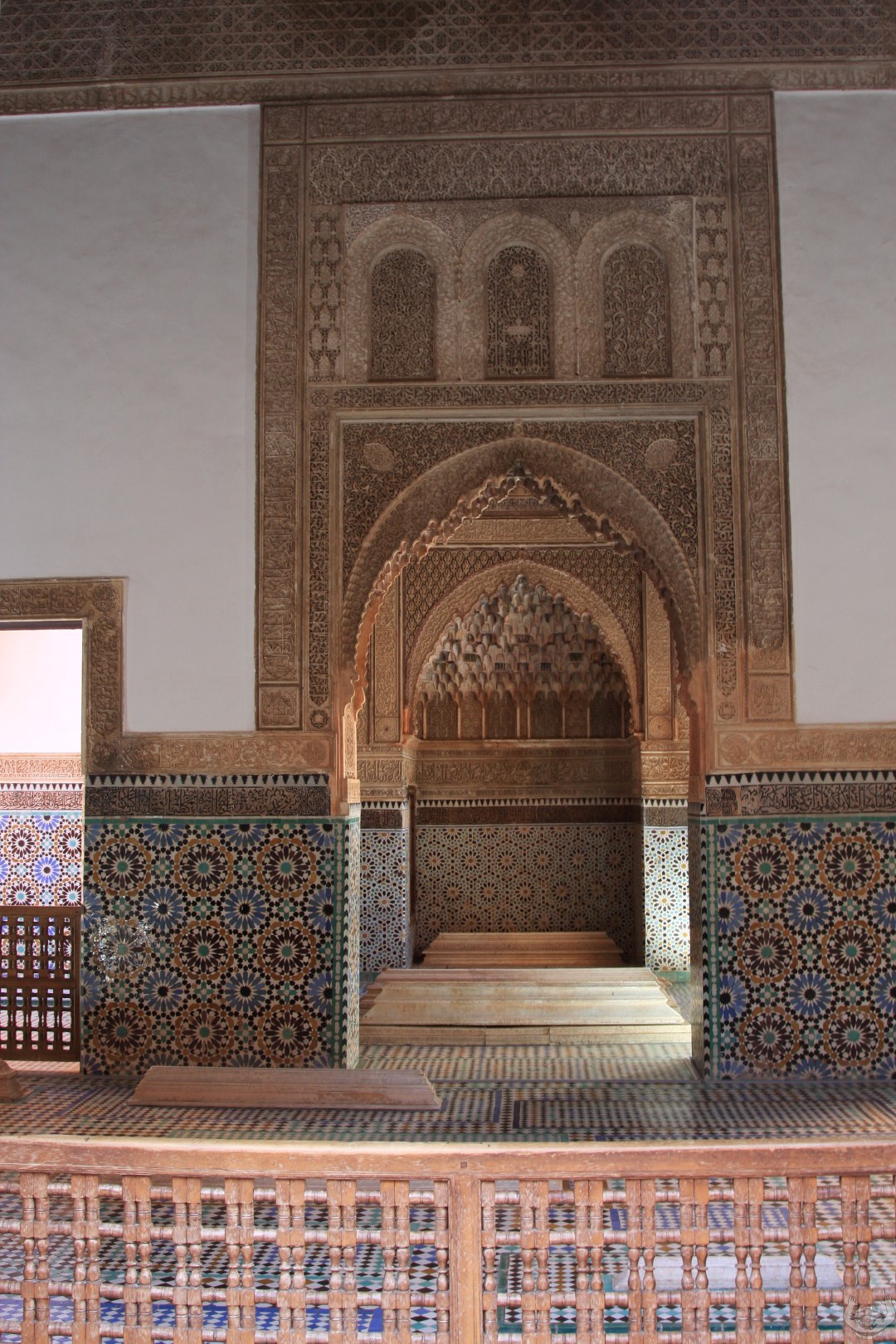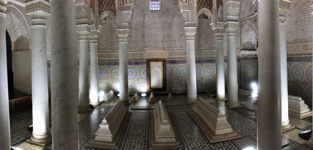 Daarna zijn we naar De Saadian tombes gelopen. Een prachtig bewaarde begraafplaats omdat deze pas herontdekt is door de Fransen in 1917. Deze was 400 jaar dichtgemetseld was geweest door een jaloerse opvolger van de toenmalige koning.