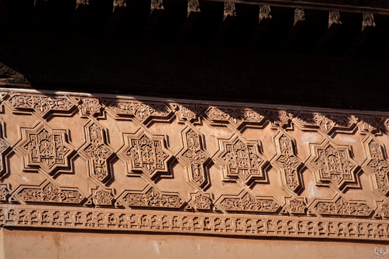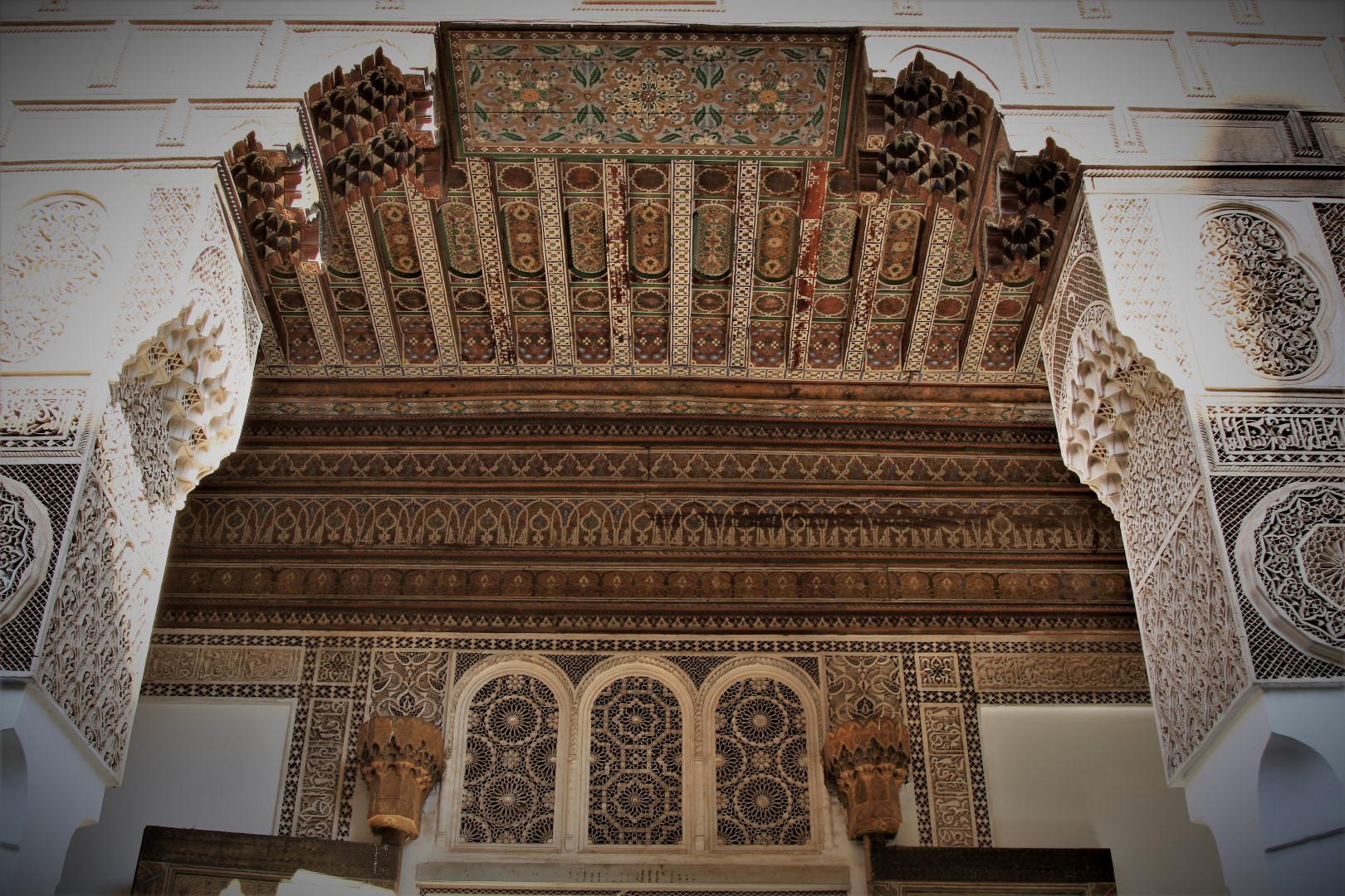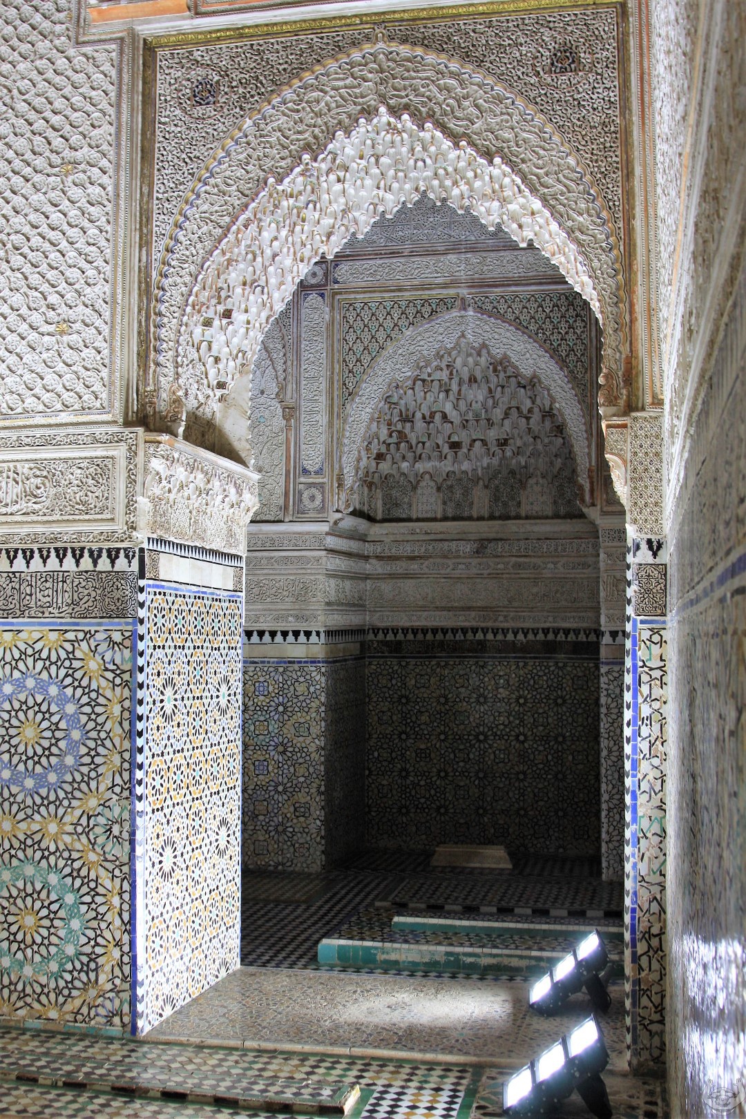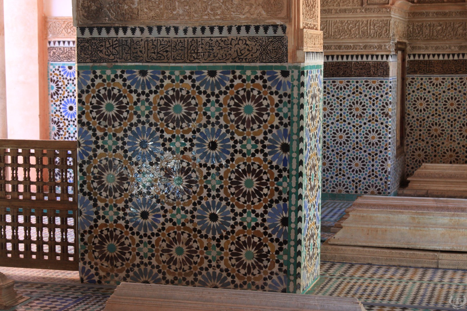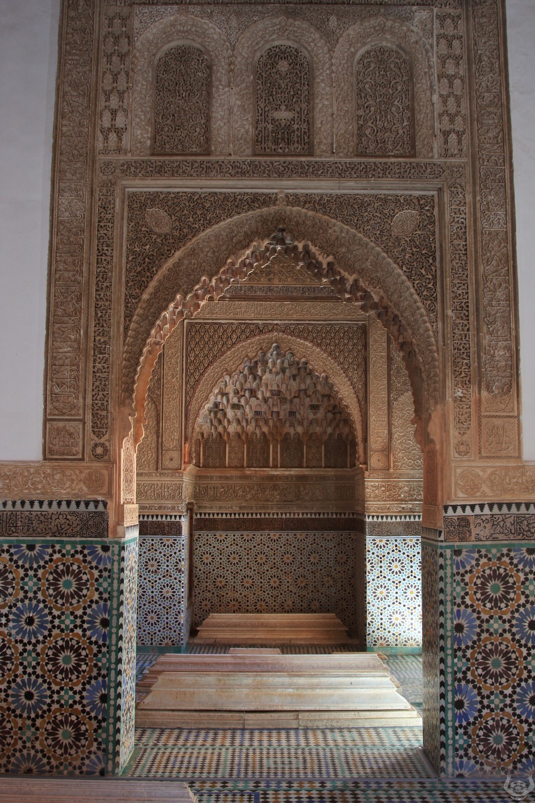 Daarna zijn we naar De Saadian tombes gelopen. Een prachtig bewaarde begraafplaats omdat deze pas herontdekt is door de Fransen in 1917. Deze was 400 jaar dichtgemetseld was geweest door een jaloerse opvolger van de toenmalige koning.