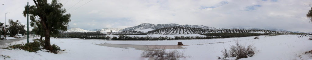 Half 7 op ontbijt en hop in de bus. Lange reis vandaag kleine 500 km. Iedere 2 uur sanitaire stop en om 12.30 een berberlunch in het Atlasgebergte waar het flink gesneeuwd heeft.