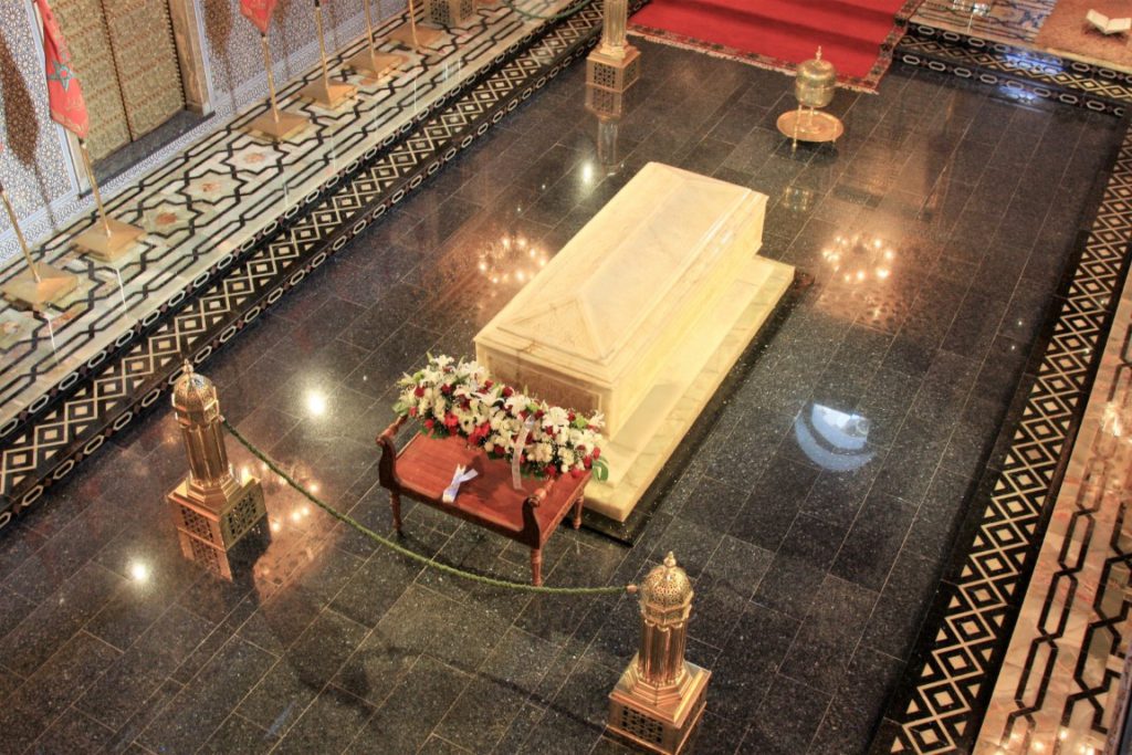 Vervolgens in de bus naar Rabat. Daar gaan we het mausoleum van Mohamed V bekijken. Wat een pracht en praal. Na een half uurtje rondwandelen weer terug de bus in om naar Casablanca te gaan.