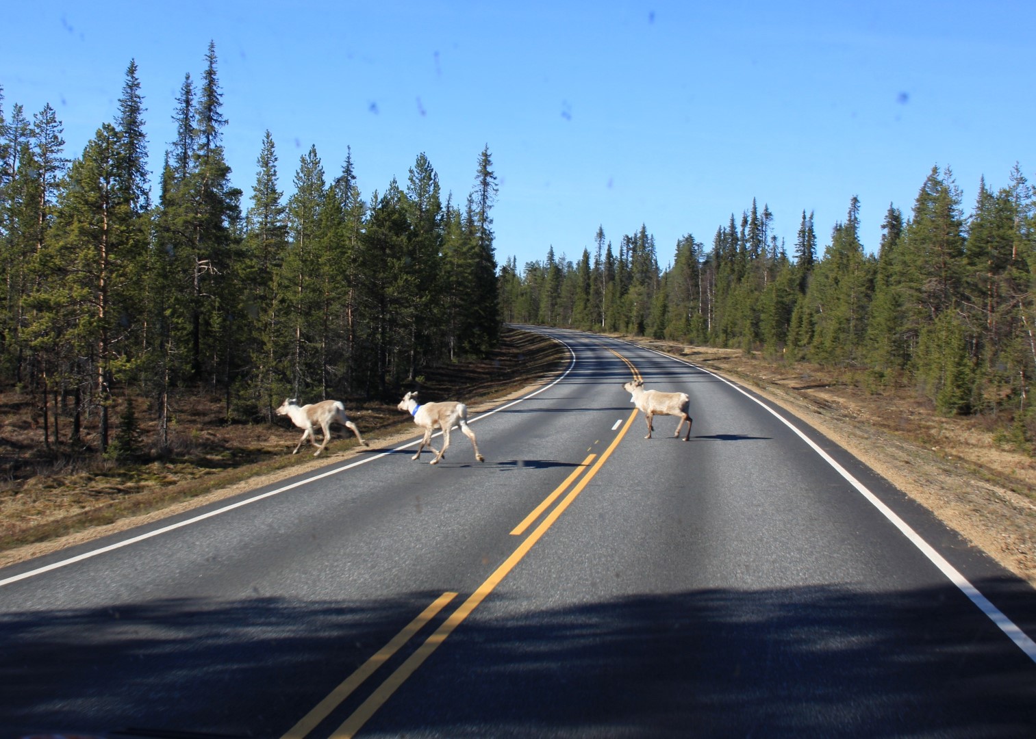 Nu op weg naar de Noordkaap. Toen we de grens van Finland naar Noorwegen overgingen was de temperatuur gezakt naar 15 graden terwijl het nog steeds erg zonnig was. Hele mooie vergezichten onderweg.