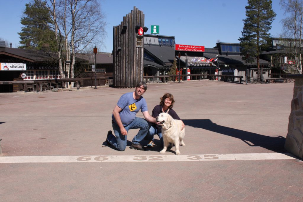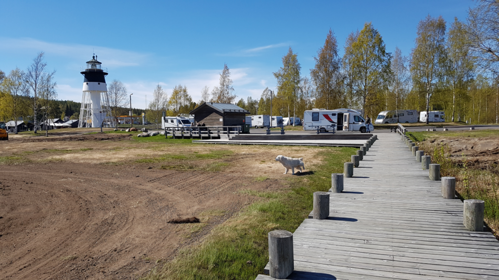 In Inari was ook een mooi uitkijkpunt dus dat wilden we ook graag zien. We moesten daar wel een hike pad lopen van zo’n 2 km. Ger vond het prachtig totdat we bij de brug over het snelstromende water aankwamen. Hij ging wel over de brug heen maar echt niet van harte. Het was de moeite van het lopen waard.