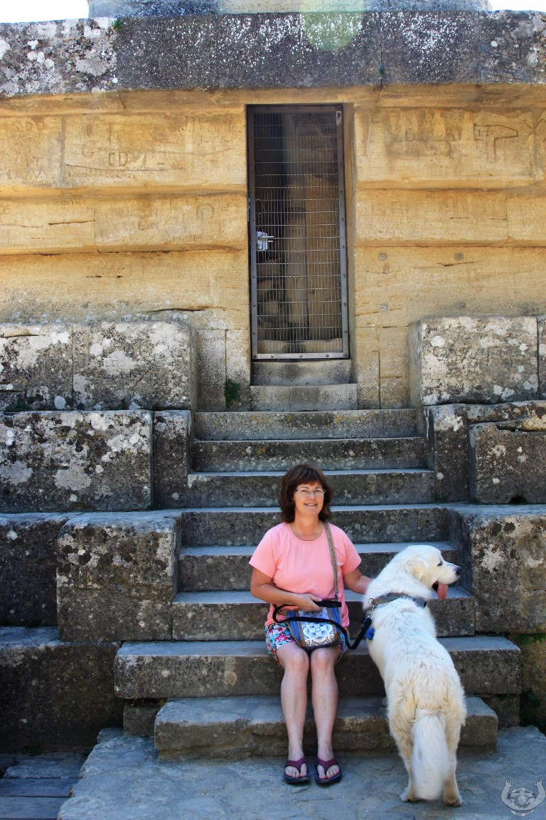 Vandaag gaan we opnieuw een poging wagen om het Chateau d’Estoublon te bezoeken en misschien wat wijn en/of olijfolie te kopen die daar geproduceerd wordt. In het boekje van de Provence staat dat je er ook heerlijk kunt eten en drinken in een restaurant tussen de wijnranken en olijfbomen. Dit laatste blijkt niet het geval, sterker nog het restaurant zit in het chateau en is niet open. Ook de wijn en olijfgaarden kun je niet bezoeken. De winkel wel. Heel mooi maar ook erg duur. Dat is dus jammer en aangezien we gisteren een andere Mas hebben gezien waar ze ook wijn verkopen, gaan we daar weer naar op zoek. Deze lag langs de weg van Saint-Remy naar huis, dus die weg zoeken wij weer op. Hierdoor komen we ook weer door Les Baux waar het vandaag ook weer stinkend druk is. De route is echter de moeite waard. Het is hier echt een prachtig gebied.