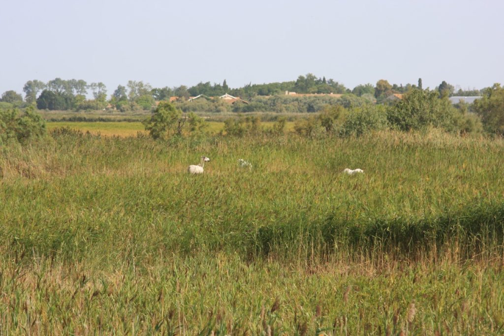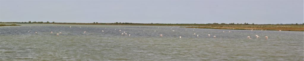 De reis gaat verder en we moeten nog zo’ n vier uur rijden om via de binnenwegen naar Montpellier te rijden. In de Camargue zien we zowaar flamingo’s in het water naast de weg. Als we door de Camargue rijden zien we tot onze verbazing de Flamingo`s gewoon langs de weg staan iets waar we op een eerdere vakantie heel veel moeite voor hebben gedaan met verrekijkers en telelenzen .