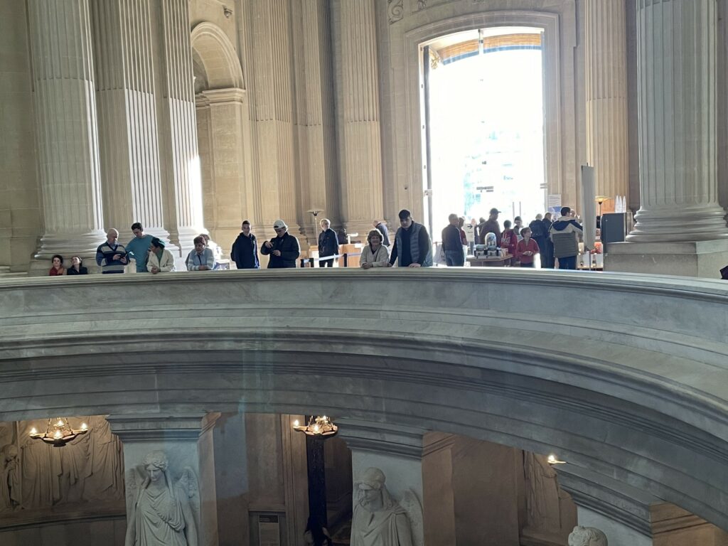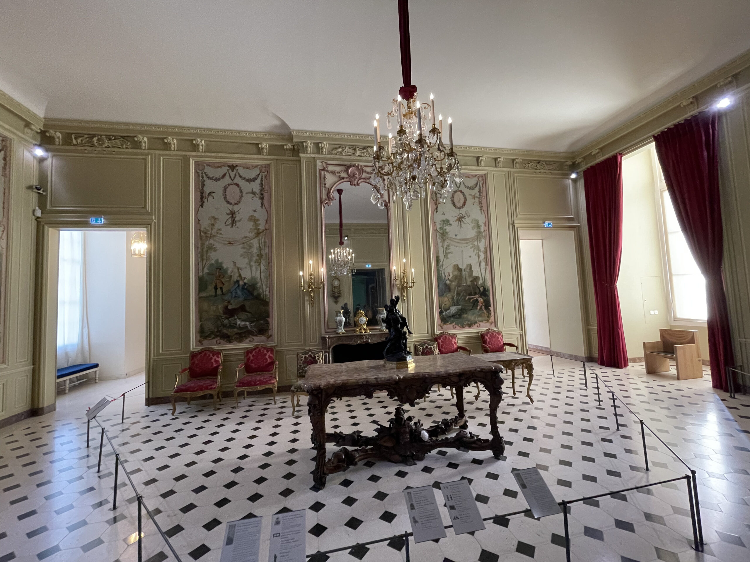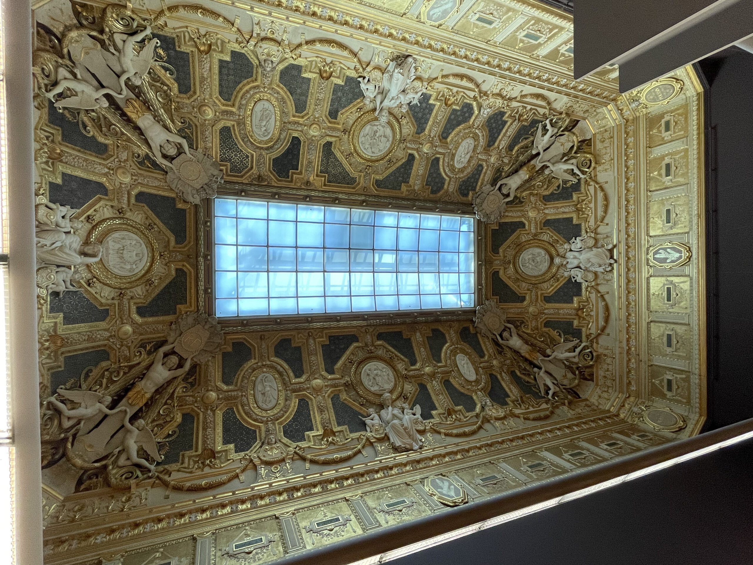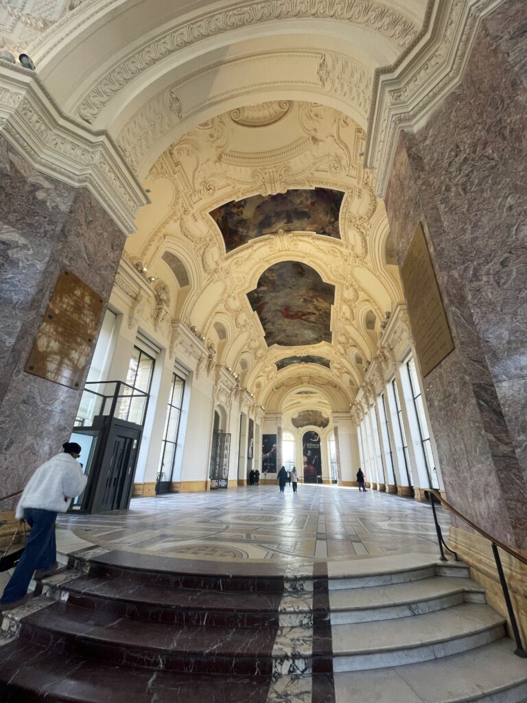 We moesten erg ons best doen om alle Instagrammers te ontwijken. Man wat een gedoe zeg. Sommige Aziaten hadden zich helemaal in avondkledij gestoken voor de foto’s. Het prachtige plafond geschilderd door Chagall is heel mooi. In de bibliotheek hangen nog twee oude plafondversieringen.