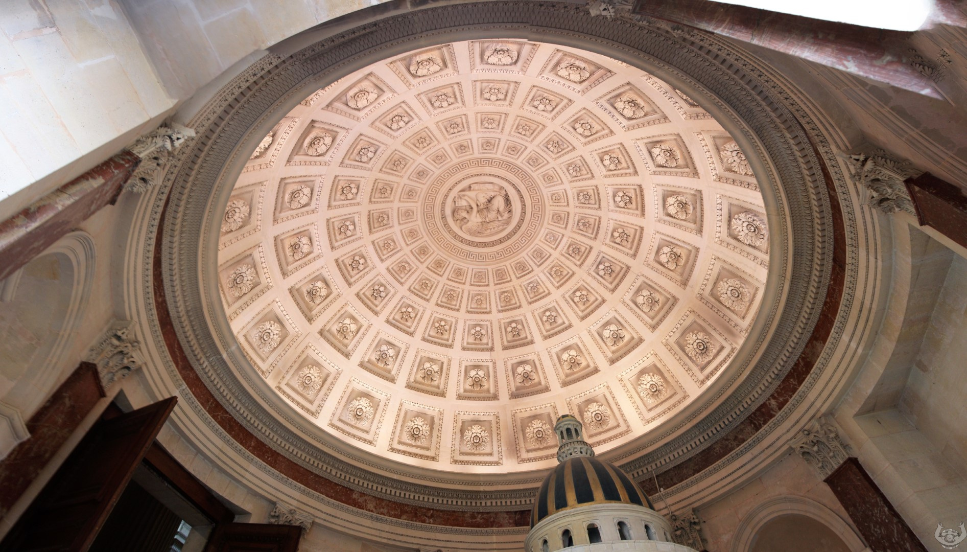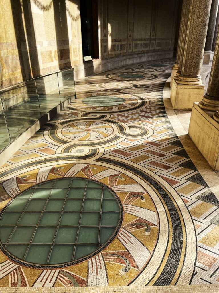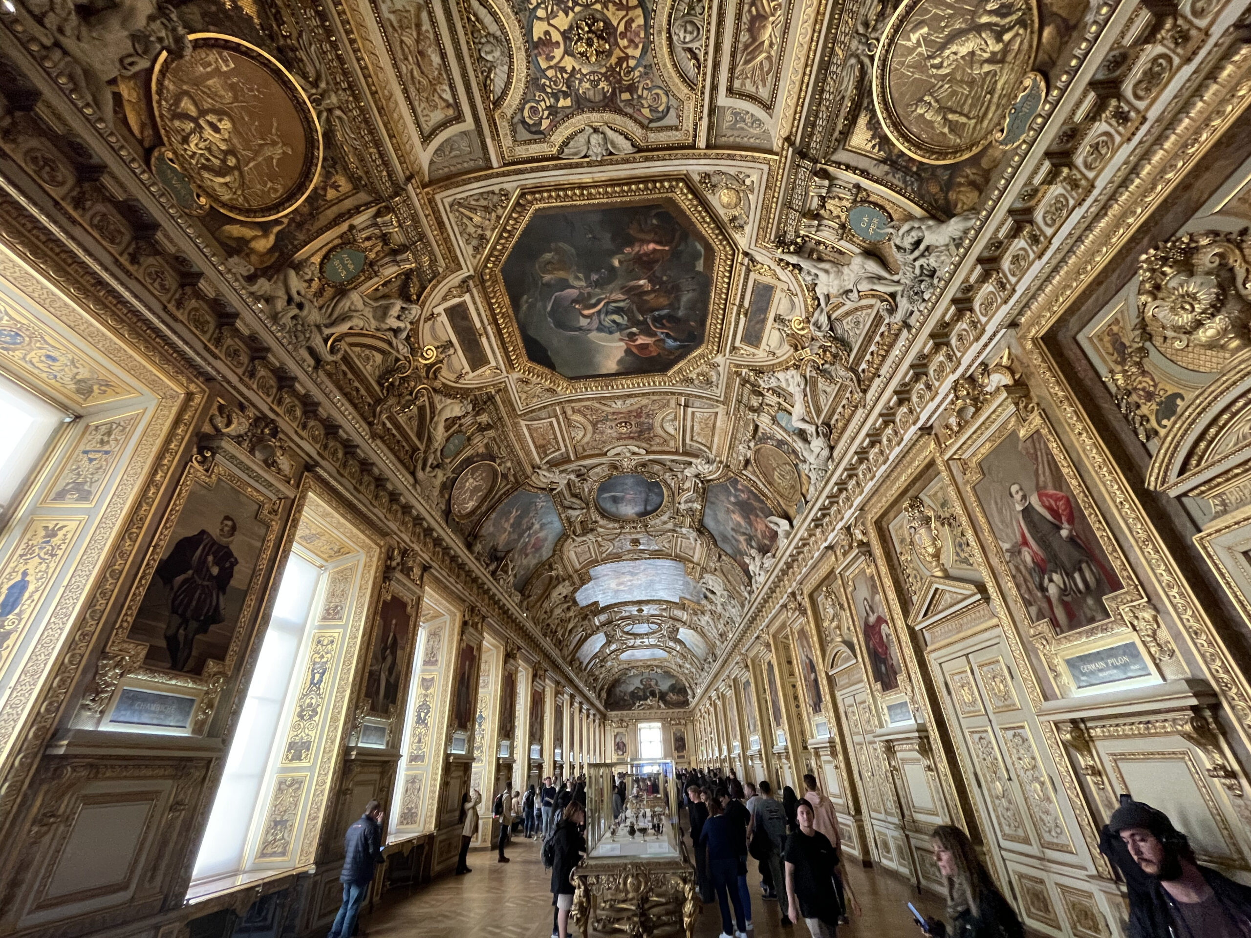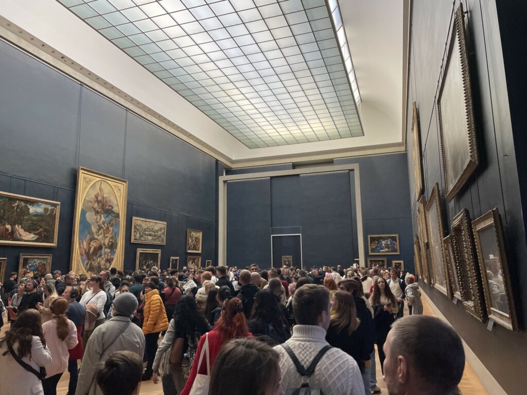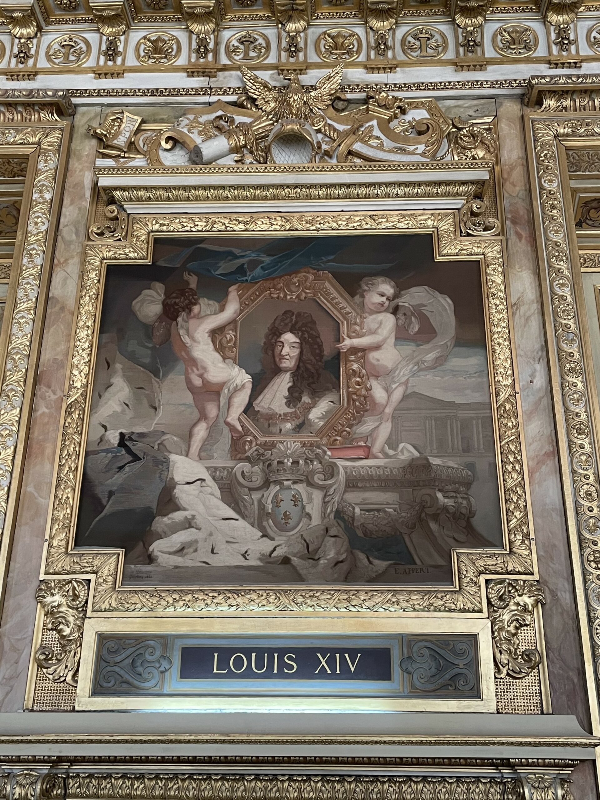 We moesten erg ons best doen om alle Instagrammers te ontwijken. Man wat een gedoe zeg. Sommige Aziaten hadden zich helemaal in avondkledij gestoken voor de foto’s. Het prachtige plafond geschilderd door Chagall is heel mooi. In de bibliotheek hangen nog twee oude plafondversieringen.