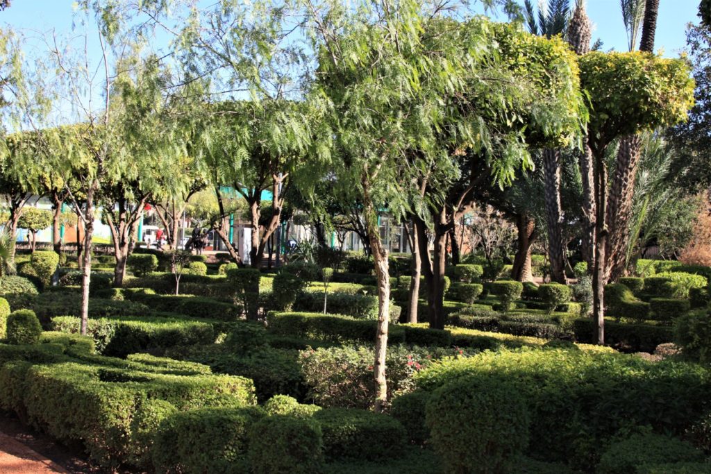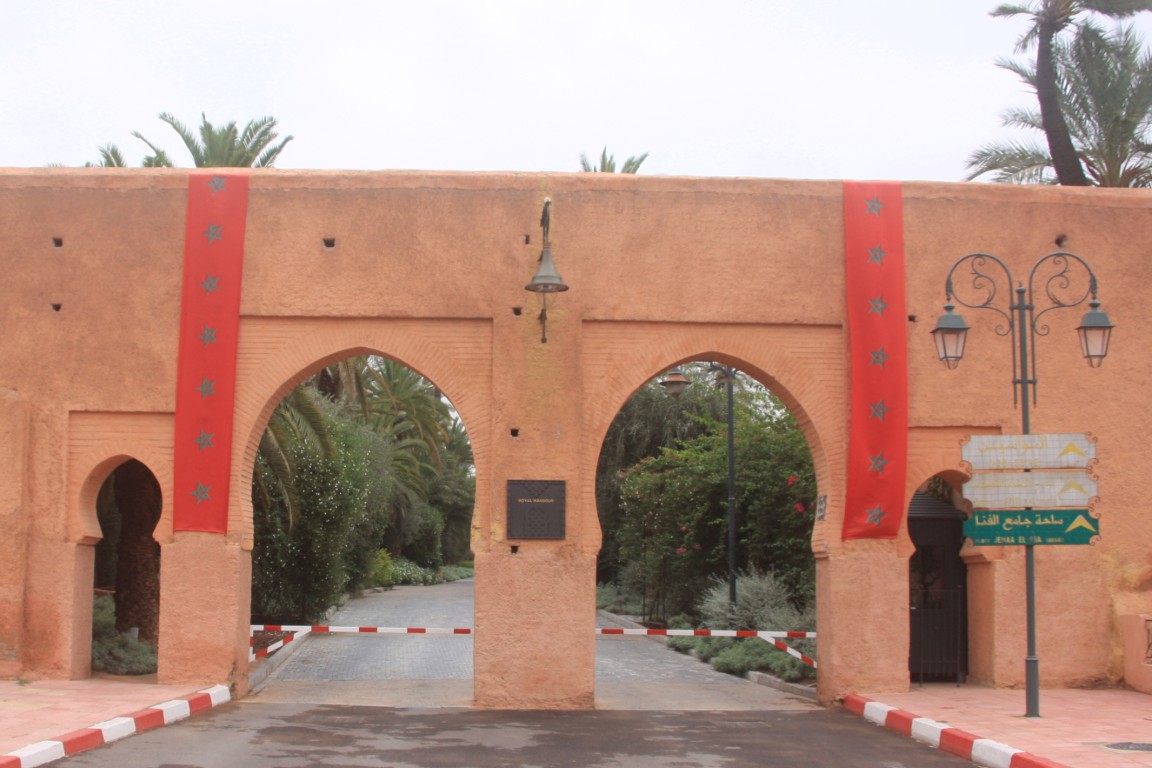 Het weer was niet echt top en het leek er op dat het ging regenen. Onderweg gingen we langs het cyberpark alleen zoals vaker in een stad als deze was de route flexibel en gingen we via een omweg en belanden we bij het sjiekste hotel van Marrakesh “Het Royal Mansour” via de grote oprijlaan belanden we bij het park. Bij de ingang was een tentoonstelling van Maroc telecom over telefoon door de jaren heen van vast naar mobiel nadat we hier hadden rond gekeken moesten we echt naar de wc en tegen over de tentoonstellingsruimte zat een verkoopruimte met achterin een toilet, Resoluut maar zonder te vragen gingen we om beurten even naar de wc. Volgens Peter stonden er een aantal mensen een beetje raar te kijken. Maar er gebeurde niets en onze letterlijke opluchting was groot .
