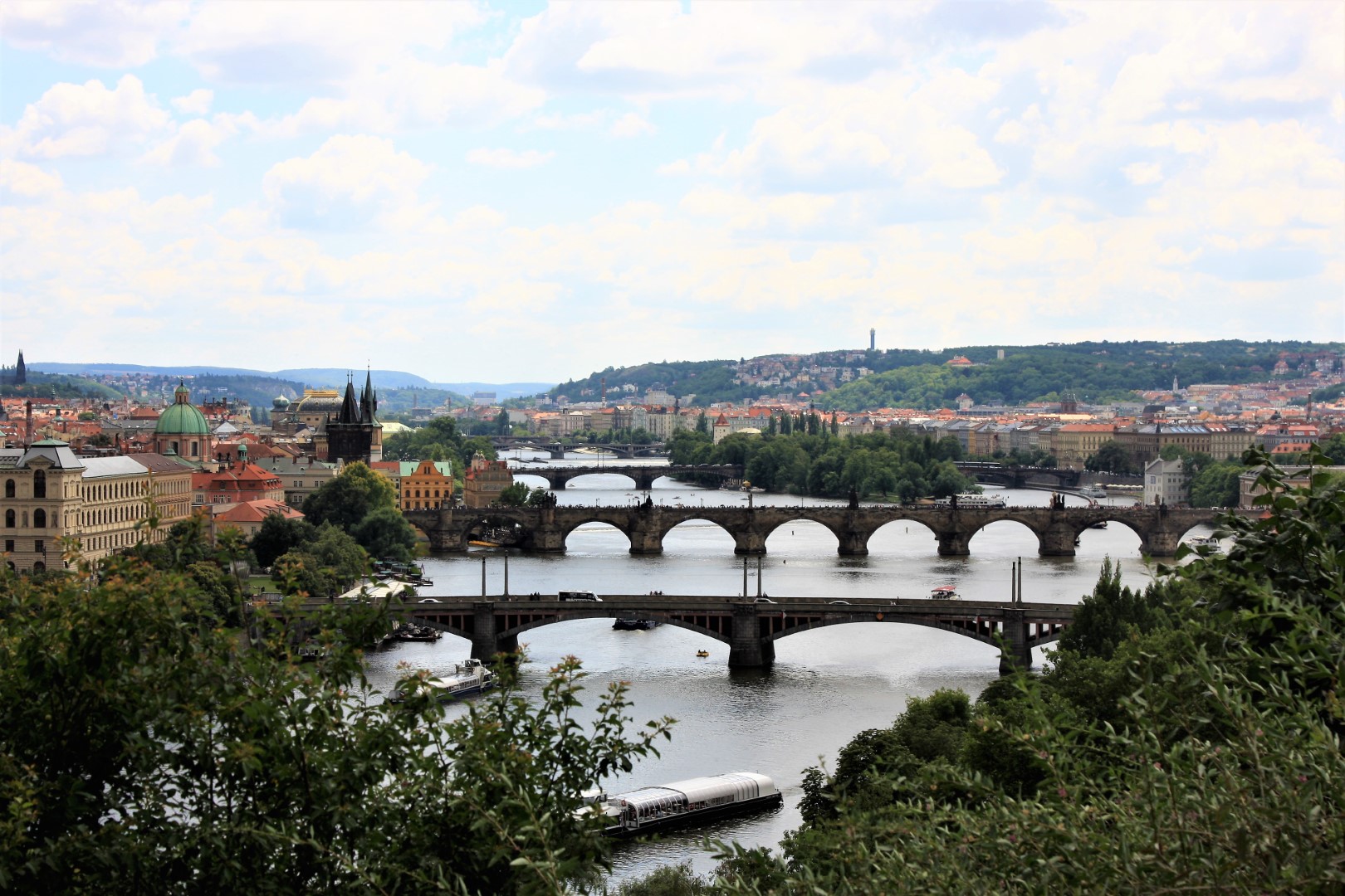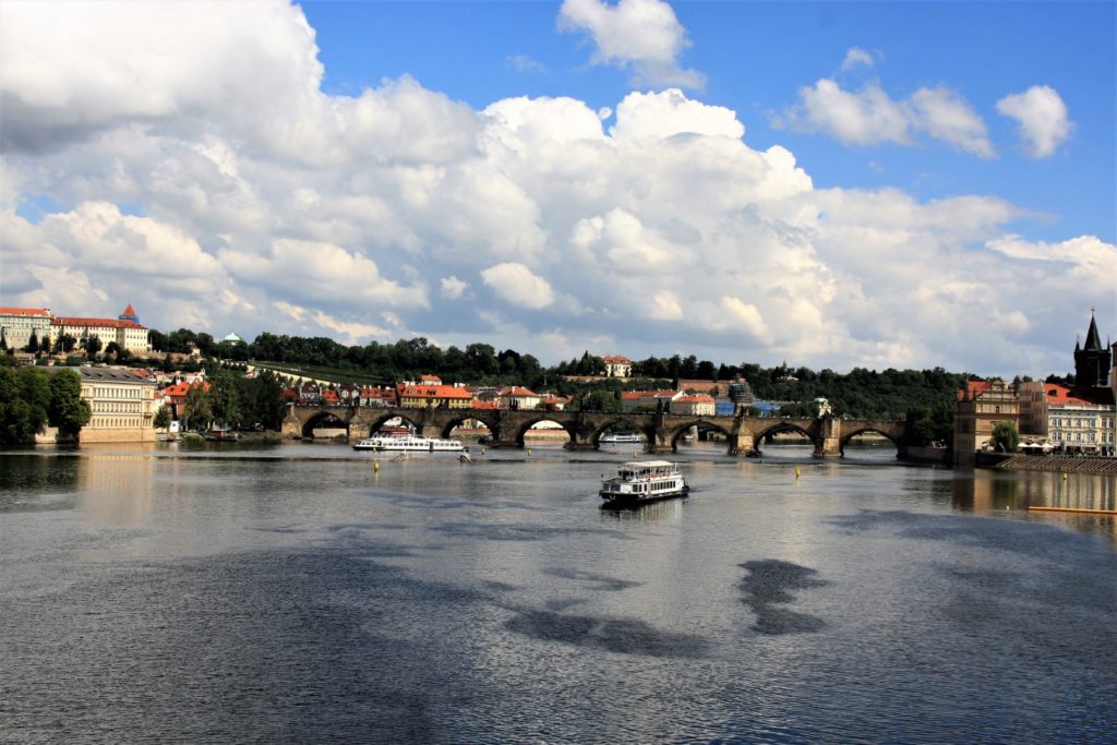 ‘Smorgens een prima ontbijtje gehad en hup in de tram richting het centrum. Uitstekende verbinding. Daarna te voet over de Karlsbrug naar de tourist office. Uiteindelijk toch maar geen Prague Card gekocht maar een dag hop on hop of bus zodat we goed konden zien waar we graag naartoe zouden willen gaan de komende dagen. Uitgestapt bij het Metronoom dat bovenop een van de heuvels van Praag staat.