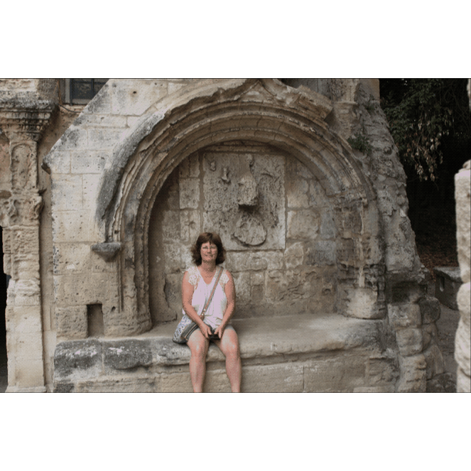 Zo gezegd zo gedaan, maar ook nu komen we niet aan de hele wandeling toe, omdat we eerst de necropolis van Alyscamps en daarna het Amfitheater te bezoeken. We snappen dat Vincent hierover geschilderd heeft maar kunnen de mooie kleuren die hij eraan gegeven heeft niet echt plaatsen. Wij hebben blijkbaar niet zoveel fantasie als hij. Daarom vinden wij zijn schilderijen waarschijnlijk ook zo mooi.