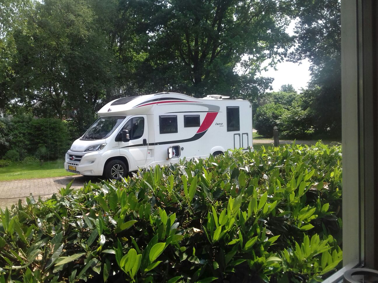 Een zeer uitgebreide uitleg gehad en op naar Bemmel om alle spullen op te halen die we de laatste tijd verzameld en naar mama gebracht hebben. Mama had een heerlijke lunch klaar staan.Snel de camper ingericht en naar Vierhouten gereden alwaar we heerlijk onthaald werden met een tomaten groentesoep en een broodje kroket. Omdat Peter jarig was kreeg hij ook een enorme doos met knoppers. Dus hij kan de hele vakantie snoepen. Als klap op de vuurpijl kregen we ook nog chips en een lekkere fles wijn mee. Na vele goede tips en tricks op pad naar de stelplaats in de buurt van Bremerhaven in Duitsland. Alwaar we rond 9 uur hopen aan te komen.