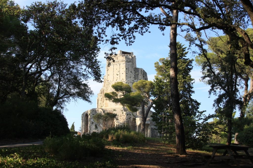 We lunchen met het uitzicht op de Arena en lopen daarna door naar de “Tour Magne“. Een grote vervallen toren uit de Romeinse tijd die bovenop een mooi park Jardins de la Fontaine met veel fonteinen ,een prachtige romeinse tempel en trappen ligt. Nadat we even in het park met Gerrit hebben rondgelopen besluiten we om niet naar boven te lopen en Gerrit eerst maar even naar huis te brengen. Hij is toch al moe en dan gaan wij gewoon weer terug. Zo gezegd en gedaan en dat was maar goed ook, want het was echt een flinke klim om boven te komen. In de Tour Magne zaten vervolgens ook nog eens 3 dubbele wentel trappen met 140 treden waarna je een prachtig uitzicht over de stad hebt. Echt wel de moeite van het klimmen waard. Om de wandeling af te sluiten nemen we een Hoegaarden bij de Temple de Diane die beneden in het park staat. Ondanks dat er een enorm bord staat dat je de tempel niet mag beklimmen, zien we diverse mensen die er toch op staan. Zo zagen we ook een bord aan een kant van de vijver staan dat je de vissen geen brood mag voeren, maar het is een enorme vijver en als je van de andere kant komt…. tja dan zie je dat bord pas als al je brood op is. Het is dus maar goed dat we geen brood bij ons hadden……