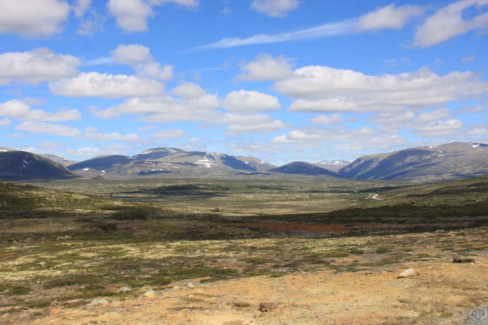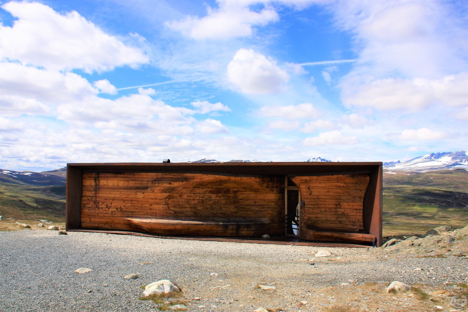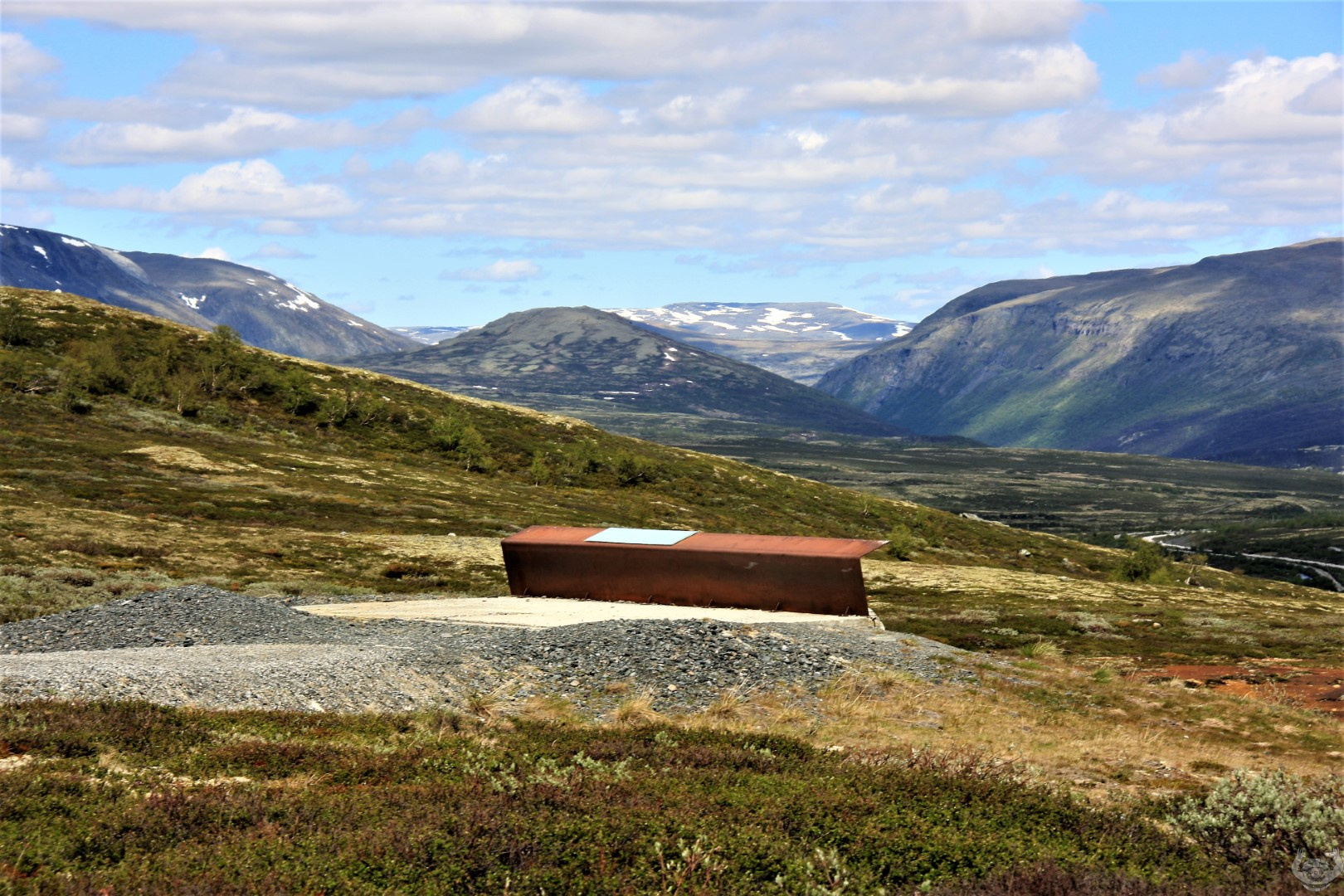 Even een stukje memory lane langs Oppdal en Dombas (you got the one with the fjuw, lees view). Tussen Oppdal en Dombas twee keer gestopt voor een wandeling. De 1e keer voor een sterk in de rotsen ingesleten stroomversnelling Megapoulet geheten en de tweede keer voor een wandeling in het Dovrjefell natjonal park naar een magnifiek mooi gebouwd uitkijkpunt snohetta met een dito mooi zeg maar waanzinnig uitzicht.