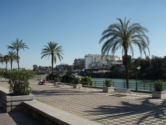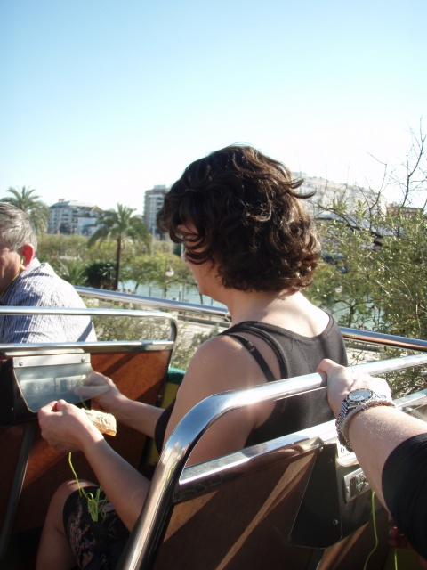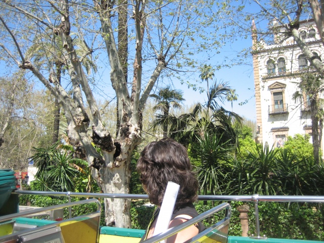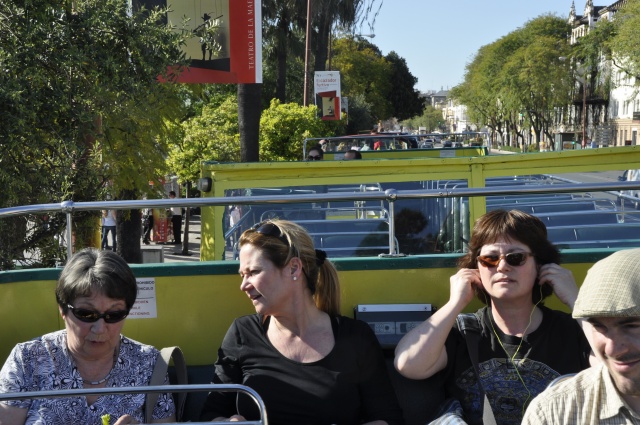 De vlucht met ryanair ging heel goed. Op tijd weg en zeer op tijd aangekomen. Omdat er een lange rij voor de bus stond, zijn we met een taxi naar het hotel gegaan. Om kwart voor twee waren we al op de plek van bestemming. 25 graden in de schaduw, dus maar gauw een korte broek aan en op pad. Eerst lekker een stuk door de stad gelopen en daarna bij de toro del oro op de touristbus gestapt. Lekker uitgewaaid boven op de bus. Heel Sevilla gezien. Daarna voor de tweede ronde uitgestapt bij de place de Espana. Een prachtig mooi gebouw met veel mozaiek en mooie oude bomen. Daarna met de taxi terug naar het hotel en even uitgerust waarna we om 8 uur nog meer even wat zijn gaan eten. Dat was niet bijzonder, dus dat gaan wij morgen zeker beter doen. Wat een prachtige stad!