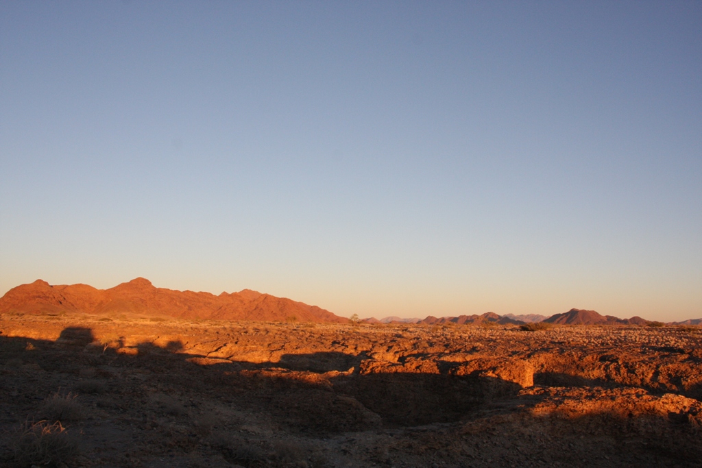 16 juli Een kaarsrechte weg voert ons de volgende dag Swakopmund uit. Even ten noorden van de stad wordt zout gewonnen en tot daar komen we nog wat verkeer tegen. Dan hebben we de civilisatie echt achter ons gelaten en rijden langs één van de meest onbarmhartige kusten van Afrika; de Skeleton Coast. Deze 40 kilometer brede kuststrook vormt een buffer tussen de zee en het achtergelegen Kaokoland en de Damara. Het landschap is hier volkomen leeg en de enige oriëntatiepunten zijn de afstandspalen, waarop het aantal ‘miles’ vanaf Swakopmund staat. In deze kuststrook liggen gravel- en zandvlakten waar per jaar niet meer dan drie centimeter regen valt. We verblijven op de Abu Huab Campsite in Twijfelfontijn, Namibië http://www.huab.com/index.php/en/
