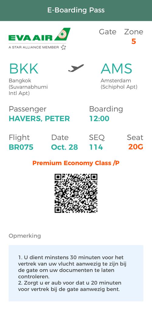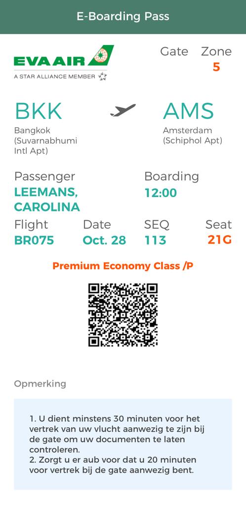 Na het laatste bezoek aan het strand is het tijd om in te checken voor de vlucht naar Amsterdam met eva air