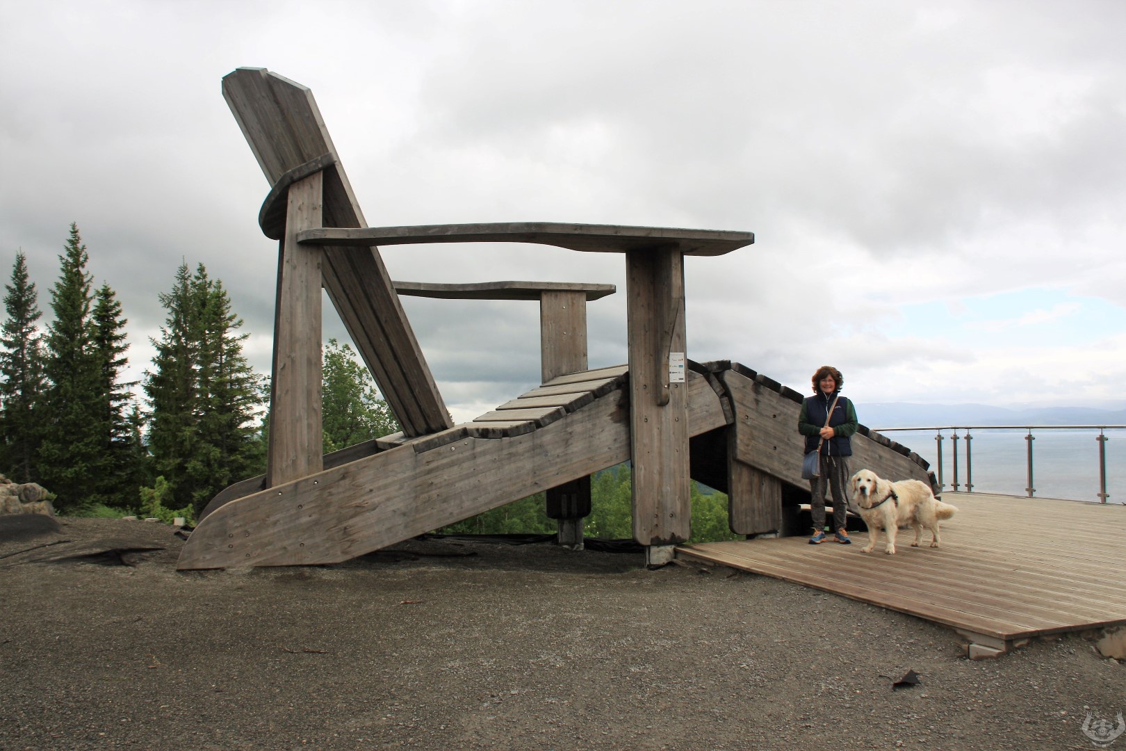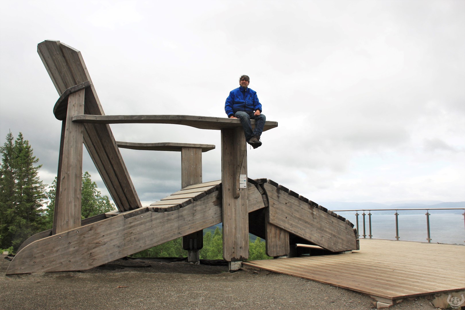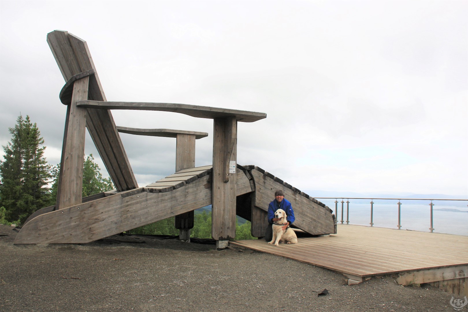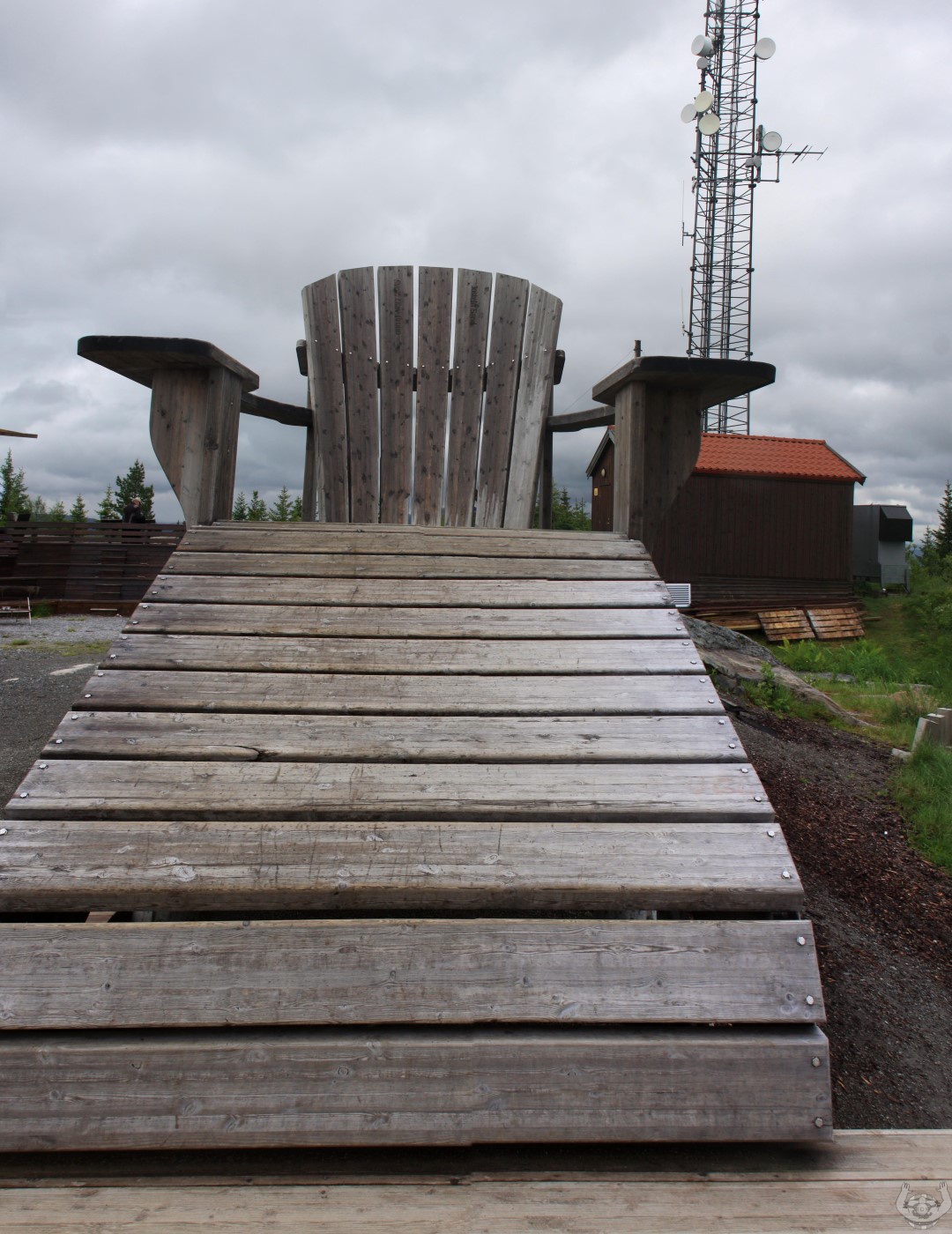 Weer op tijd op dankzij Gerrit die altijd vroeg wakker is. Vandaag willen we een wandeling maken waarbij we een berg op gaan om op de top een enorme tuinstoel te beklimmen. Het is een heel gedoe om de juiste plek te vinden. De VVV moet eraan te pas komen en het blijkt dat we 3 keer langs de juiste plek zijn gereden maar het bord met de wandelroute niet herkend hebben omdat daar een hele andere naam op staat en ook de stoel er niet op aangegeven is.